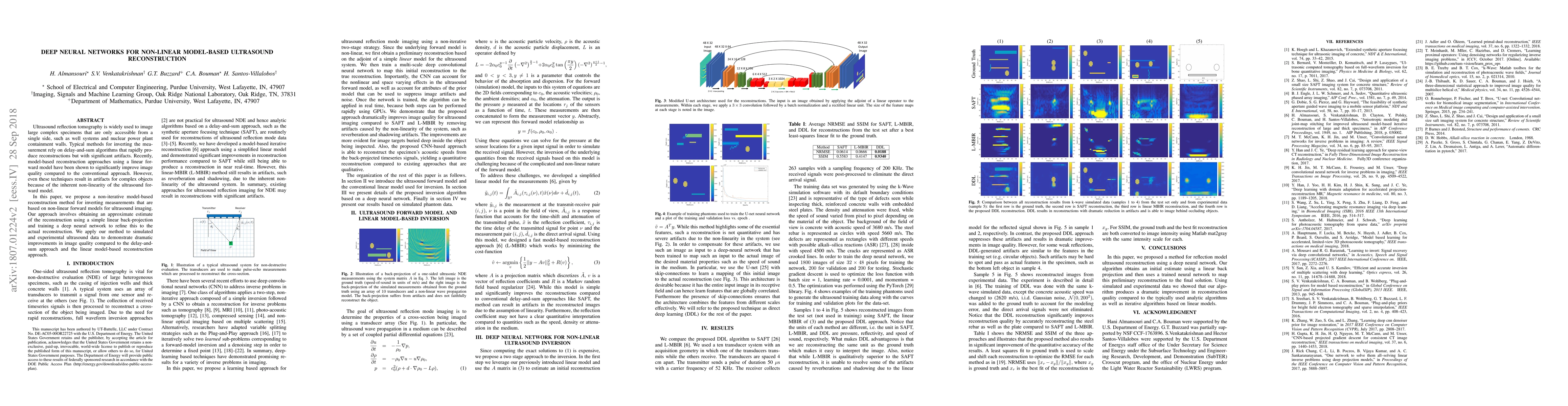 Ultrasound reflection tomography is widely used to image large complex specimens that are only accessible from a single side, such as well systems and nuclear power plant containment walls. Typical methods for inverting the measurement rely on delay-and-sum algorithms that rapidly produce reconstructions but with significant artifacts. Recently, model-based reconstruction approaches using a linear forward model have been shown to significantly improve image quality compared to the conventional approach. However, even these techniques result in artifacts for complex objects because of the inherent non-linearity of the ultrasound forward model. In this paper, we propose a non-iterative model-based reconstruction method for inverting measurements that are based on non-linear forward models for ultrasound imaging. Our approach involves obtaining an approximate estimate of the reconstruction using a simple linear back-projection and training a deep neural network to refine this to the actual reconstruction. We apply our method to simulated ultrasound data and demonstrate dramatic improvements in image quality compared to the delay-and-sum approach and the linear model-based reconstruction approach.