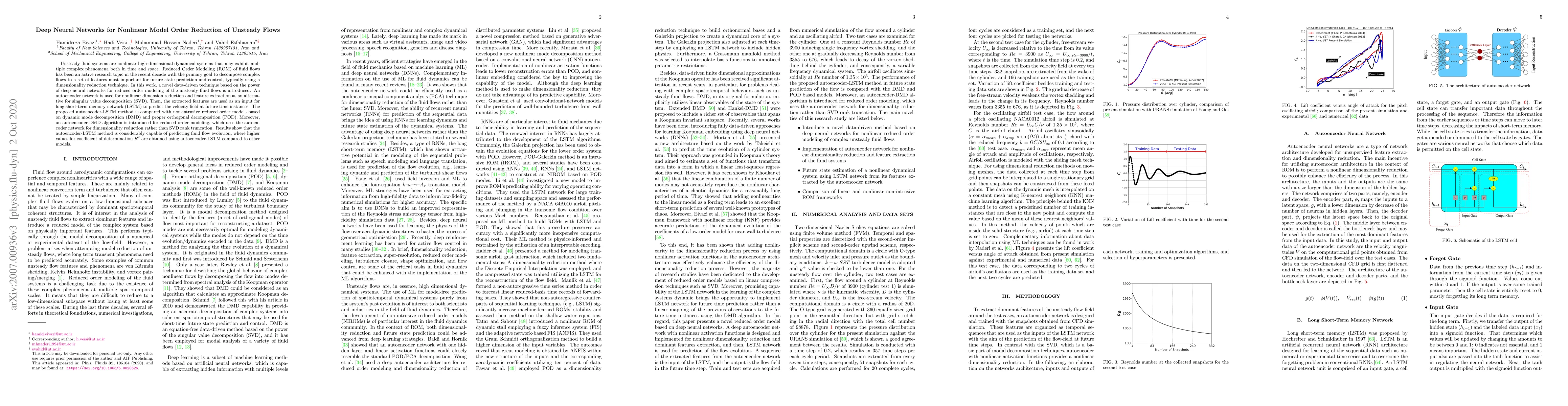 This paper introduces a novel deep neural network-based approach for reducing the order of nonlinear unsteady fluid flows. An autoencoder is used for dimensionality reduction, followed by an LSTM network for future state prediction, outperforming traditional methods like DMD and POD in terms of prediction accuracy.