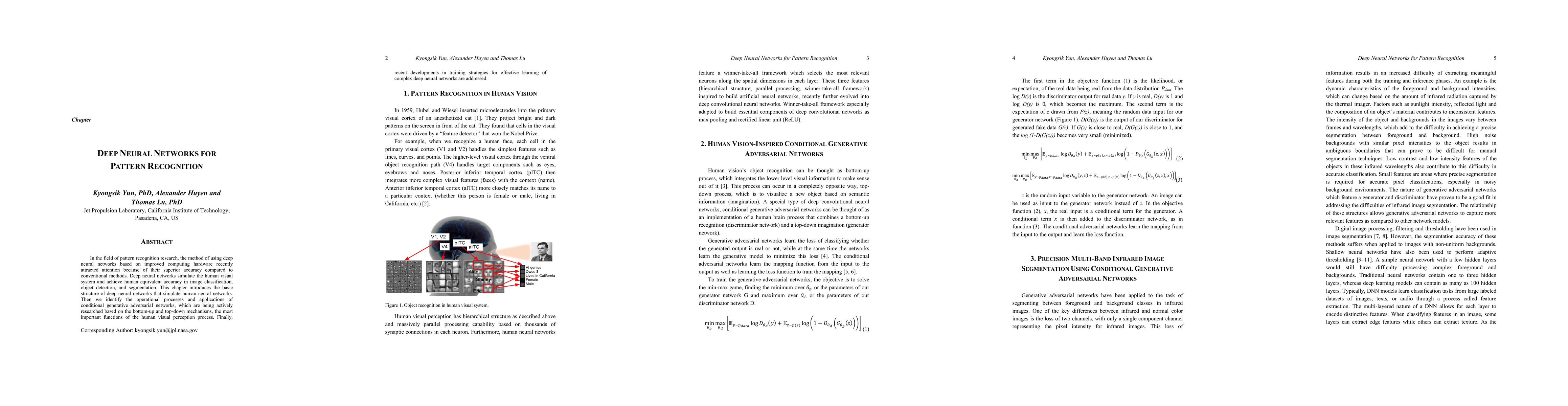In the field of pattern recognition research, the method of using deep neural networks based on improved computing hardware recently attracted attention because of their superior accuracy compared to conventional methods. Deep neural networks simulate the human visual system and achieve human equivalent accuracy in image classification, object detection, and segmentation. This chapter introduces the basic structure of deep neural networks that simulate human neural networks. Then we identify the operational processes and applications of conditional generative adversarial networks, which are being actively researched based on the bottom-up and top-down mechanisms, the most important functions of the human visual perception process. Finally, recent developments in training strategies for effective learning of complex deep neural networks are addressed.