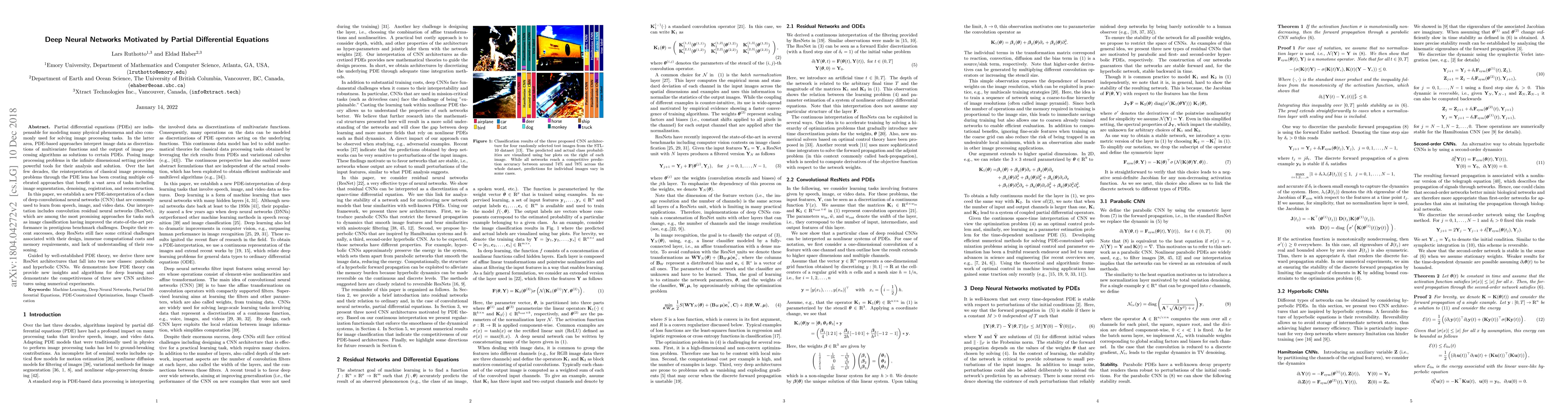This paper reinterprets deep convolutional neural networks, particularly ResNets, through the lens of partial differential equations (PDEs), deriving three new ResNet architectures—parabolic and hyperbolic CNNs—that leverage PDE theory for improved understanding and performance. Numerical experiments demonstrate the competitiveness of these new architectures.