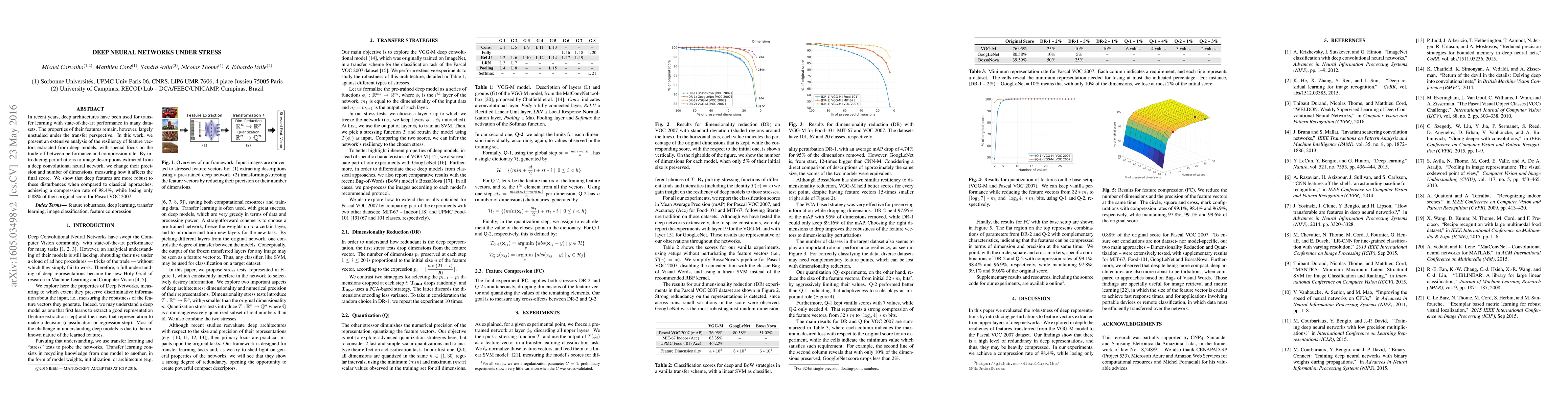 In recent years, deep architectures have been used for transfer learning with state-of-the-art performance in many datasets. The properties of their features remain, however, largely unstudied under the transfer perspective. In this work, we present an extensive analysis of the resiliency of feature vectors extracted from deep models, with special focus on the trade-off between performance and compression rate. By introducing perturbations to image descriptions extracted from a deep convolutional neural network, we change their precision and number of dimensions, measuring how it affects the final score. We show that deep features are more robust to these disturbances when compared to classical approaches, achieving a compression rate of 98.4%, while losing only 0.88% of their original score for Pascal VOC 2007.