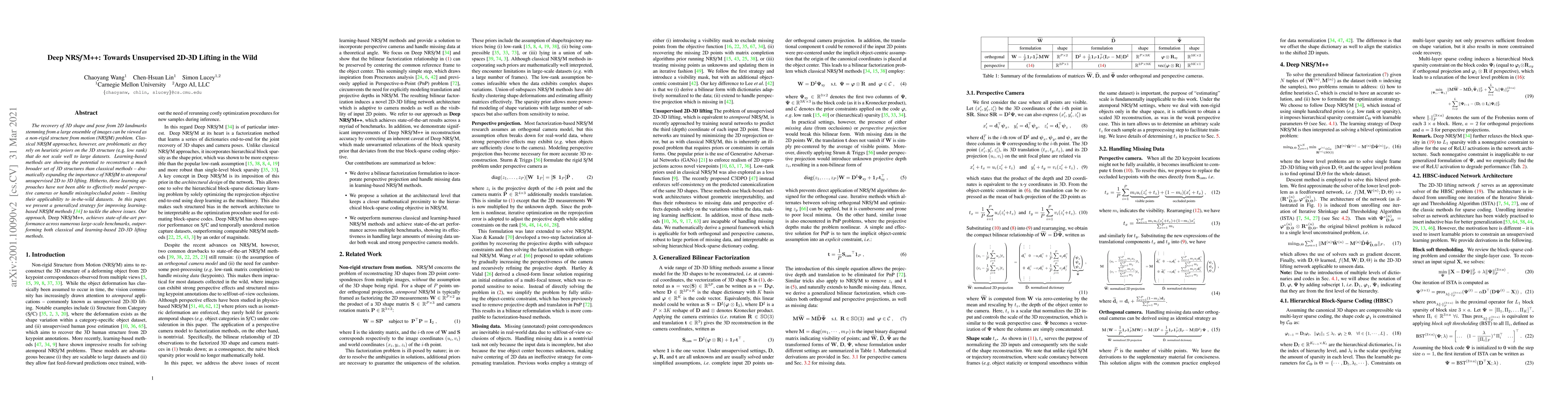 The recovery of 3D shape and pose from 2D landmarks stemming from a large ensemble of images can be viewed as a non-rigid structure from motion (NRSfM) problem. Classical NRSfM approaches, however, are problematic as they rely on heuristic priors on the 3D structure (e.g. low rank) that do not scale well to large datasets. Learning-based methods are showing the potential to reconstruct a much broader set of 3D structures than classical methods -- dramatically expanding the importance of NRSfM to atemporal unsupervised 2D to 3D lifting. Hitherto, these learning approaches have not been able to effectively model perspective cameras or handle missing/occluded points -- limiting their applicability to in-the-wild datasets. In this paper, we present a generalized strategy for improving learning-based NRSfM methods to tackle the above issues. Our approach, Deep NRSfM++, achieves state-of-the-art performance across numerous large-scale benchmarks, outperforming both classical and learning-based 2D-3D lifting methods.