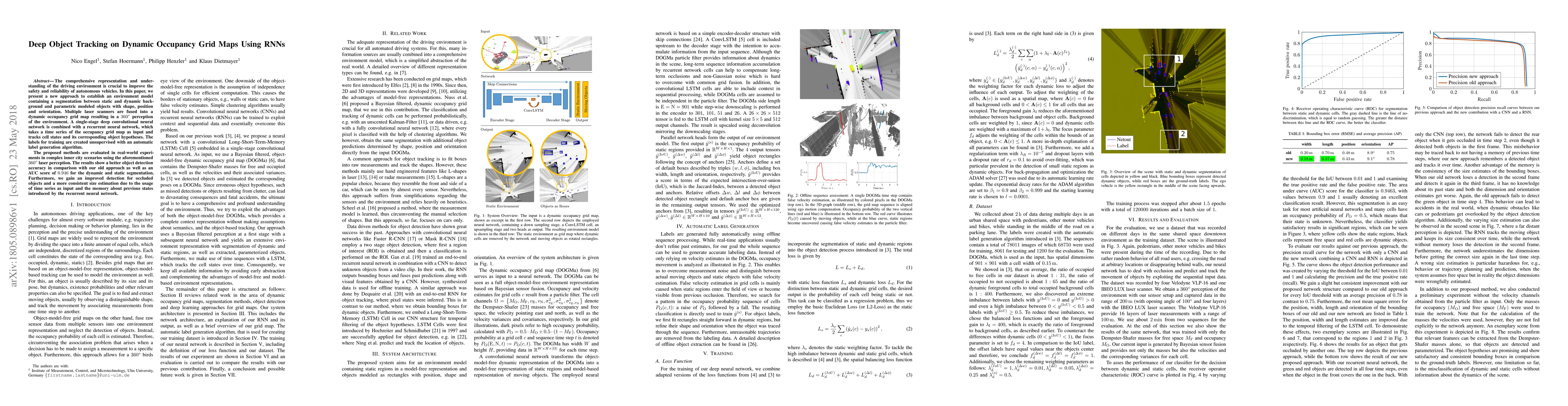 This paper introduces a novel deep learning method combining CNNs and RNNs for tracking objects in dynamic occupancy grid maps generated from laser scanner data. The method shows improved accuracy and consistency in detecting and segmenting dynamic and static objects in complex urban environments.