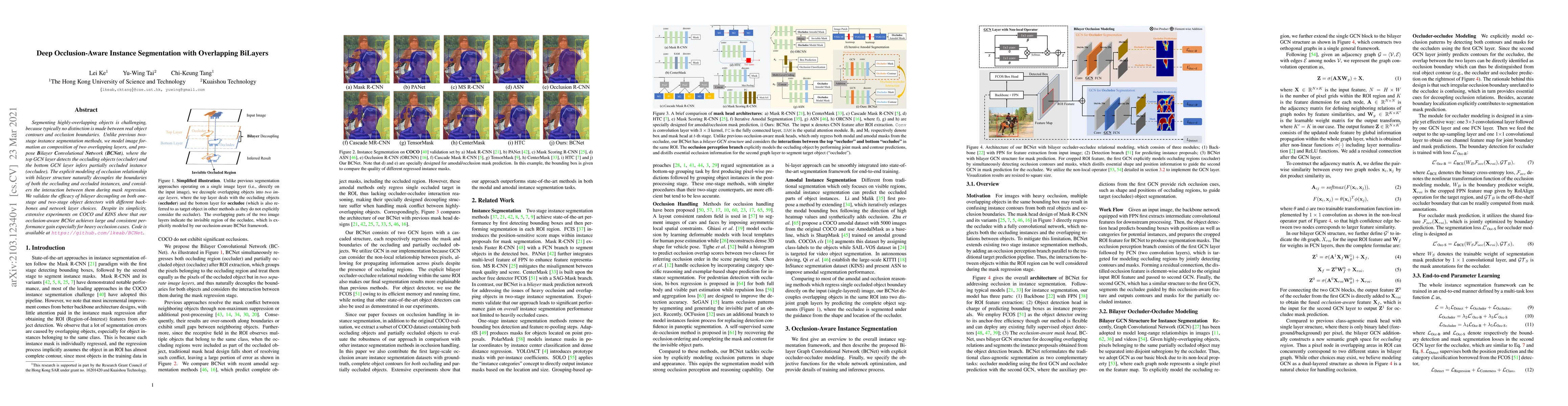 This paper proposes a Bilayer Convolutional Network (BCNet) to improve instance segmentation of highly-overlapping objects by modeling occlusion as a composition of two overlapping layers. The method achieves significant performance gains, especially in heavy occlusion cases, validated on COCO and KINS datasets.