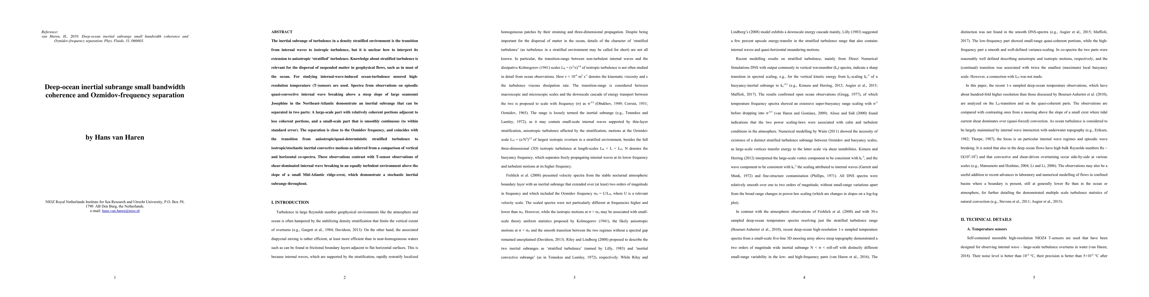 This paper investigates the inertial subrange in stratified ocean turbulence, revealing a separation near the Ozmidov frequency between anisotropic and isotropic turbulent regimes. Observations from a seamount show coherent, large-scale turbulence transitioning to a continuous, small-scale inertial subrange, contrasting with shear-dominated turbulence observed elsewhere.