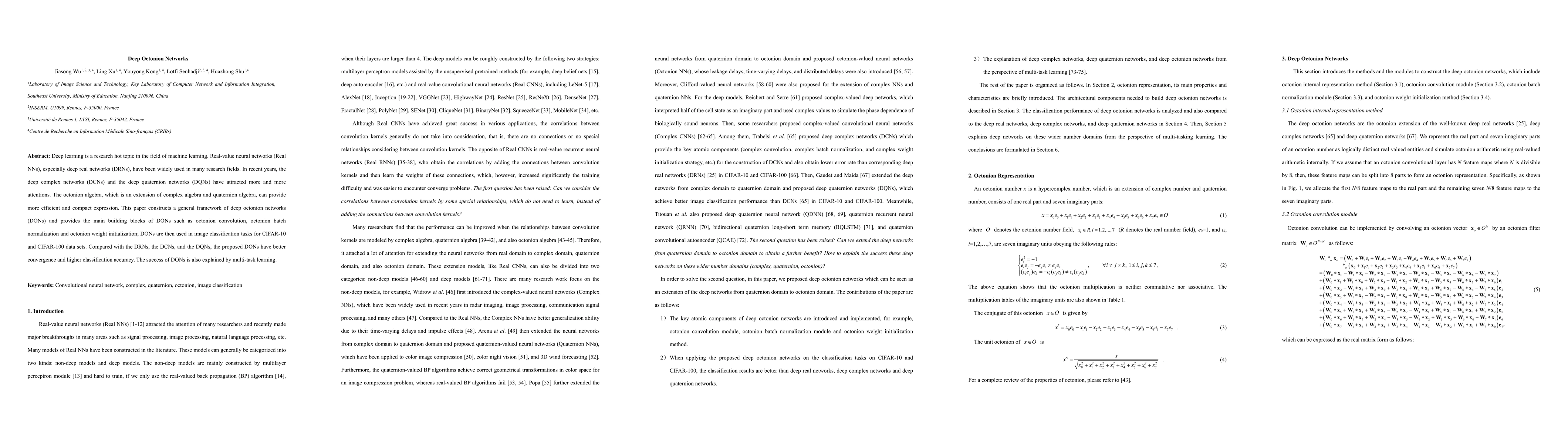 This paper introduces deep octonion networks (DONs), a framework for leveraging octonion algebra in deep learning, and demonstrates its effectiveness through improved convergence and higher classification accuracy in image classification tasks on CIFAR-10 and CIFAR-100 datasets compared to real, complex, and quaternion networks.