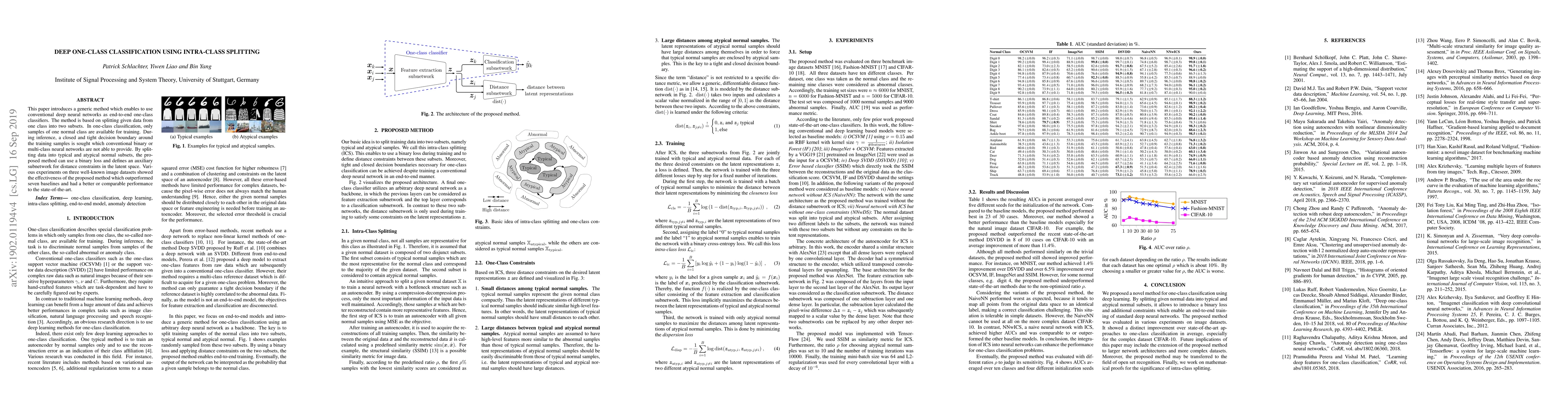 This paper proposes a method to convert conventional deep neural networks into one-class classifiers by splitting training data into typical and atypical subsets, achieving better performance than seven baselines and competitive results against state-of-the-art on image datasets.