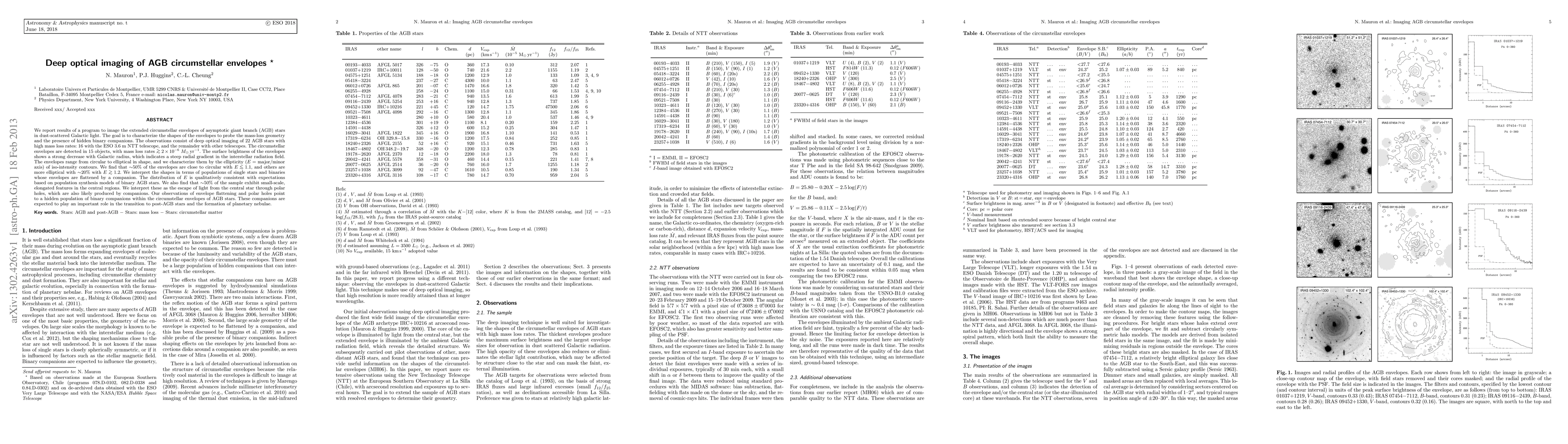 Development and application of a method for deep optical imaging to detect and characterize circumstellar envelopes around AGB stars.