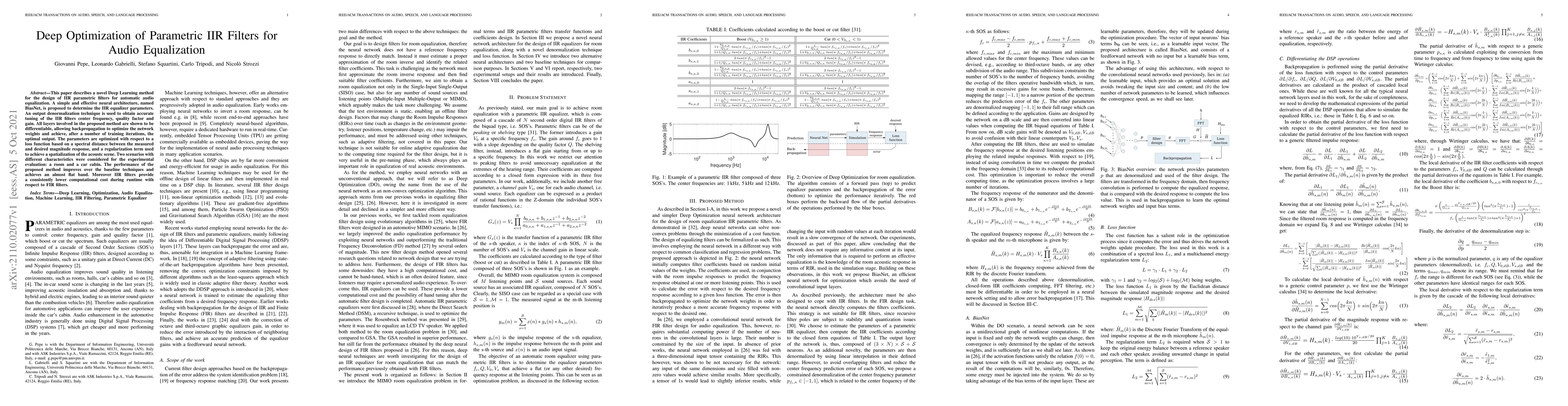 This paper proposes a novel Deep Learning method, BiasNet, for designing IIR parametric filters to automatically equalize audio, optimizing parameters through differentiable layers for efficient runtime. The method outperforms baseline techniques and achieves lower computational costs compared to FIR filters.