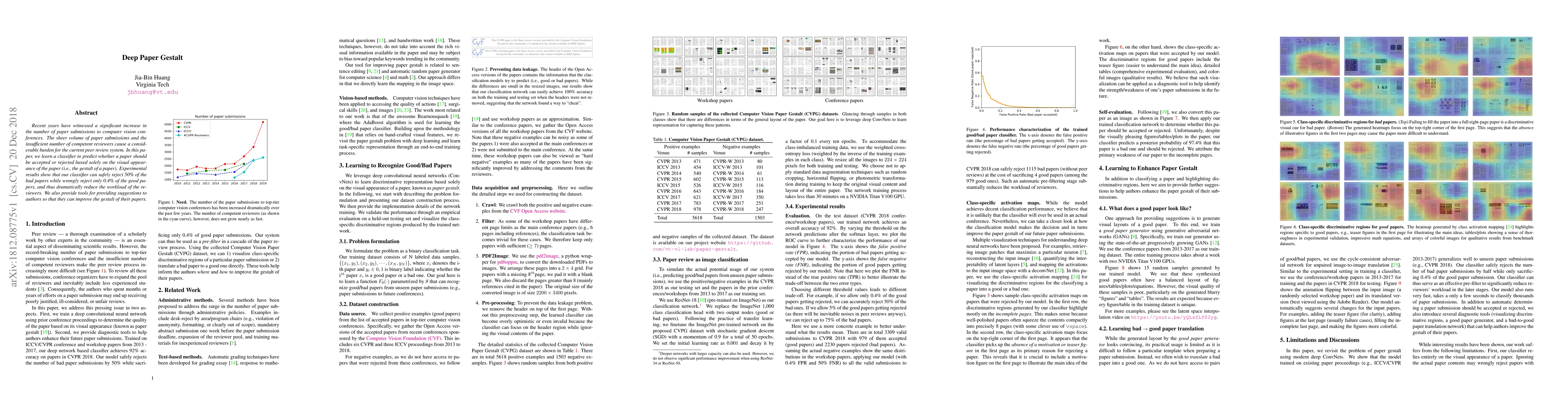 Recent years have witnessed a significant increase in the number of paper submissions to computer vision conferences. The sheer volume of paper submissions and the insufficient number of competent reviewers cause a considerable burden for the current peer review system. In this paper, we learn a classifier to predict whether a paper should be accepted or rejected based solely on the visual appearance of the paper (i.e., the gestalt of a paper). Experimental results show that our classifier can safely reject 50% of the bad papers while wrongly reject only 0.4% of the good papers, and thus dramatically reduce the workload of the reviewers. We also provide tools for providing suggestions to authors so that they can improve the gestalt of their papers.