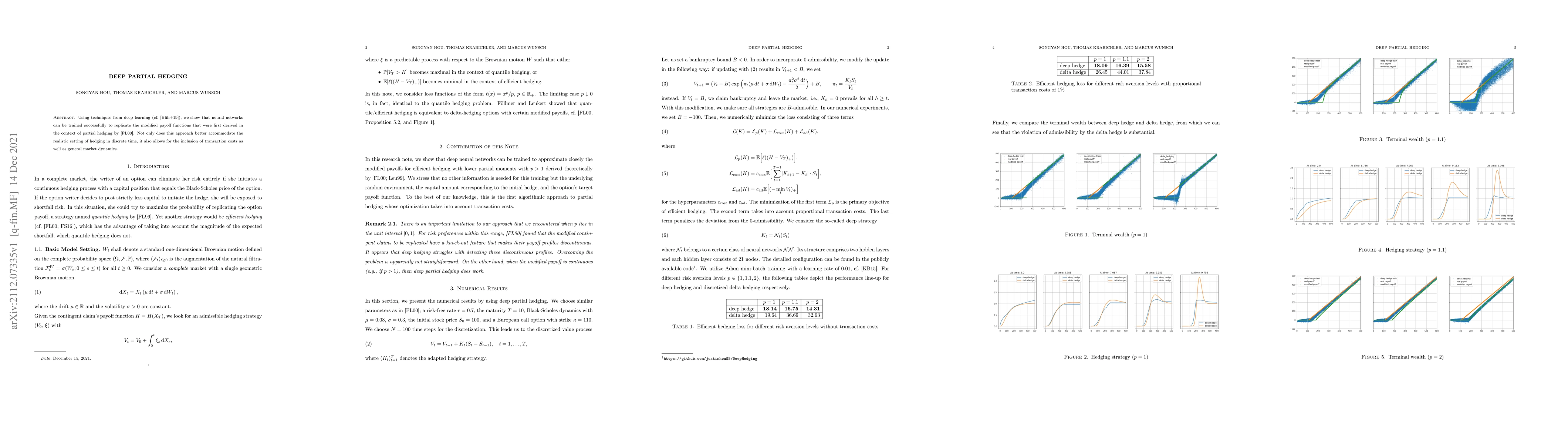 Summary: This paper leverages deep learning to train neural networks that replicate modified payoff functions for partial hedging, improving discrete-time hedging strategies by incorporating transaction costs and general market dynamics.