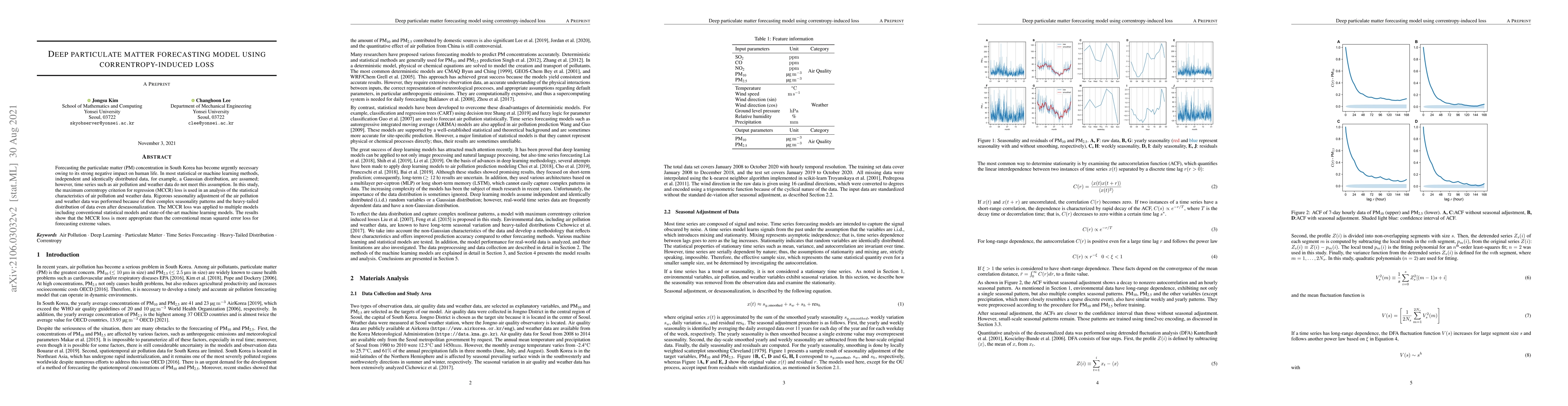 A new approach using Correntropy-Induced Loss improves forecasting of particulate matter concentration in South Korea by handling complex seasonality patterns and heavy-tailed distributions. This method outperforms traditional loss functions in predicting extreme values.