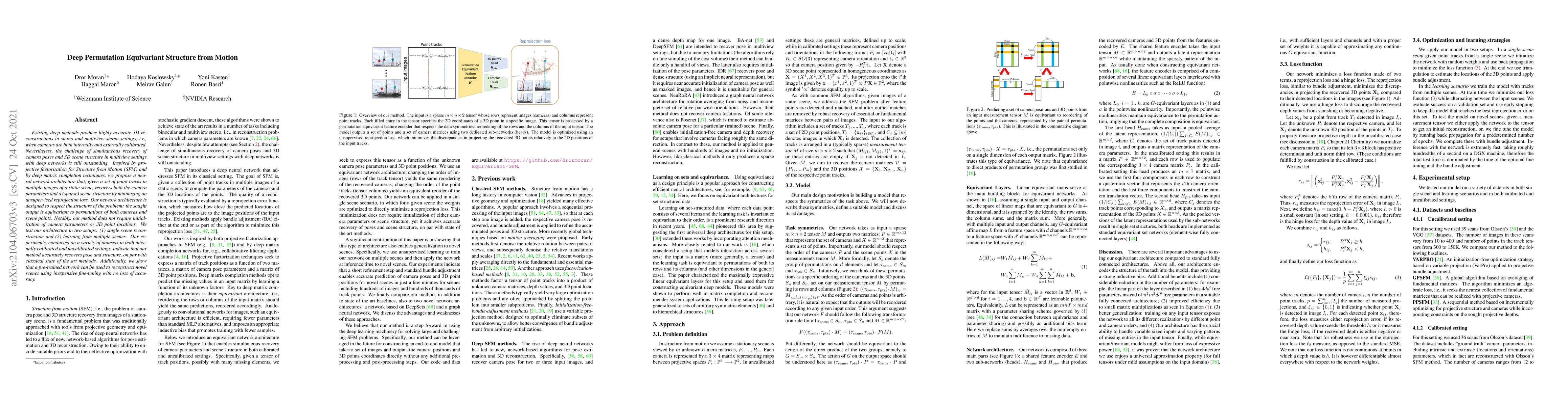 This paper proposes a deep neural network architecture for simultaneous recovery of camera poses and 3D scene structure in multiview settings, leveraging permutation equivariance and minimizing an unsupervised reprojection loss. The method achieves accurate results comparable to state-of-the-art techniques without requiring initialization, and it can fine-tune pre-trained networks for novel scene reconstructions.