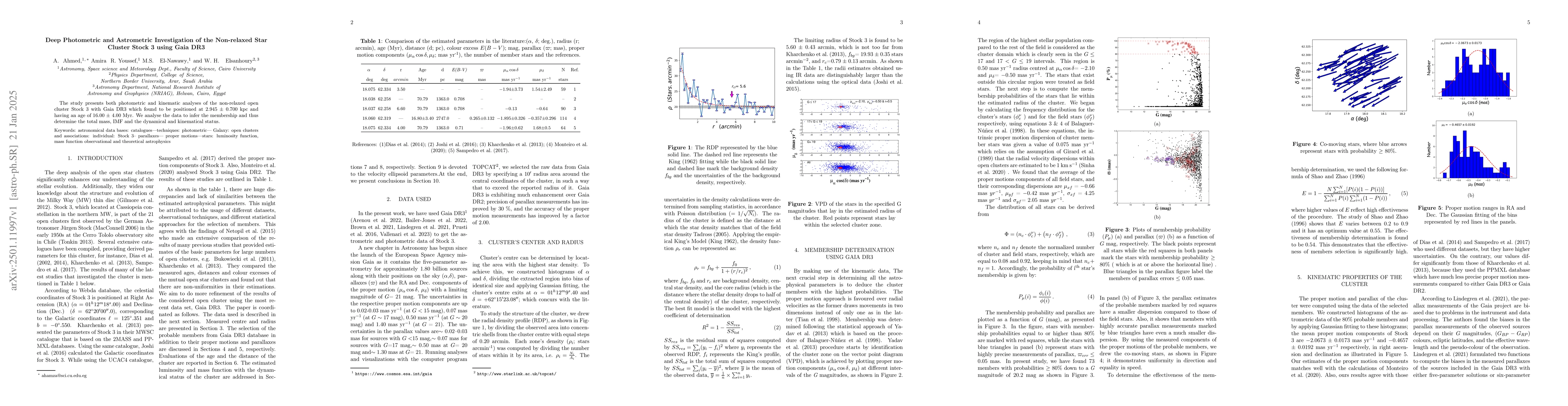 This research utilizes Gaia DR3 data to conduct photometric and astrometric analyses of the open cluster Stock 3, determining its location at 2.945 $\pm$ 0.700 kpc and age of 16.00 $\pm$ 4.00 Myr, and evaluates its membership, total mass, mass function, and dynamical status.