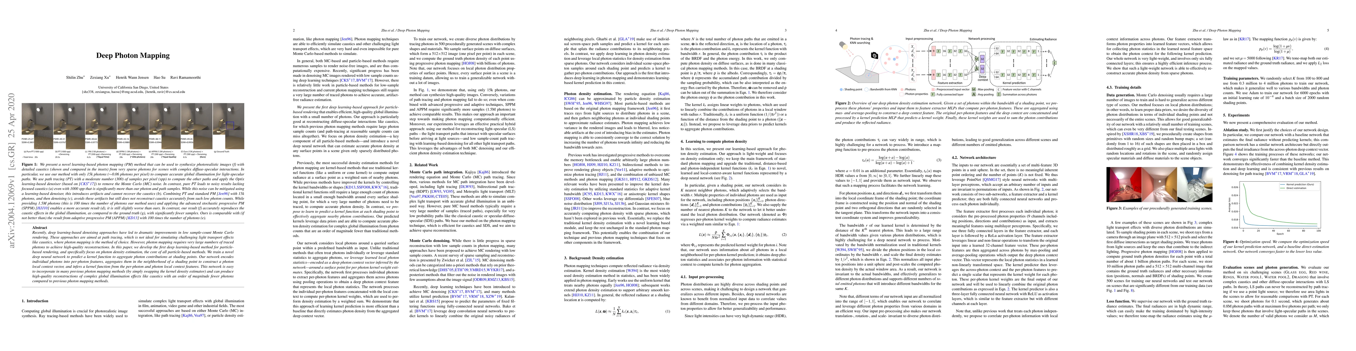 Recently, deep learning-based denoising approaches have led to dramatic improvements in low sample-count Monte Carlo rendering. These approaches are aimed at path tracing, which is not ideal for simulating challenging light transport effects like caustics, where photon mapping is the method of choice. However, photon mapping requires very large numbers of traced photons to achieve high-quality reconstructions. In this paper, we develop the first deep learning-based method for particle-based rendering, and specifically focus on photon density estimation, the core of all particle-based methods. We train a novel deep neural network to predict a kernel function to aggregate photon contributions at shading points. Our network encodes individual photons into per-photon features, aggregates them in the neighborhood of a shading point to construct a photon local context vector, and infers a kernel function from the per-photon and photon local context features. This network is easy to incorporate in many previous photon mapping methods (by simply swapping the kernel density estimator) and can produce high-quality reconstructions of complex global illumination effects like caustics with an order of magnitude fewer photons compared to previous photon mapping methods.