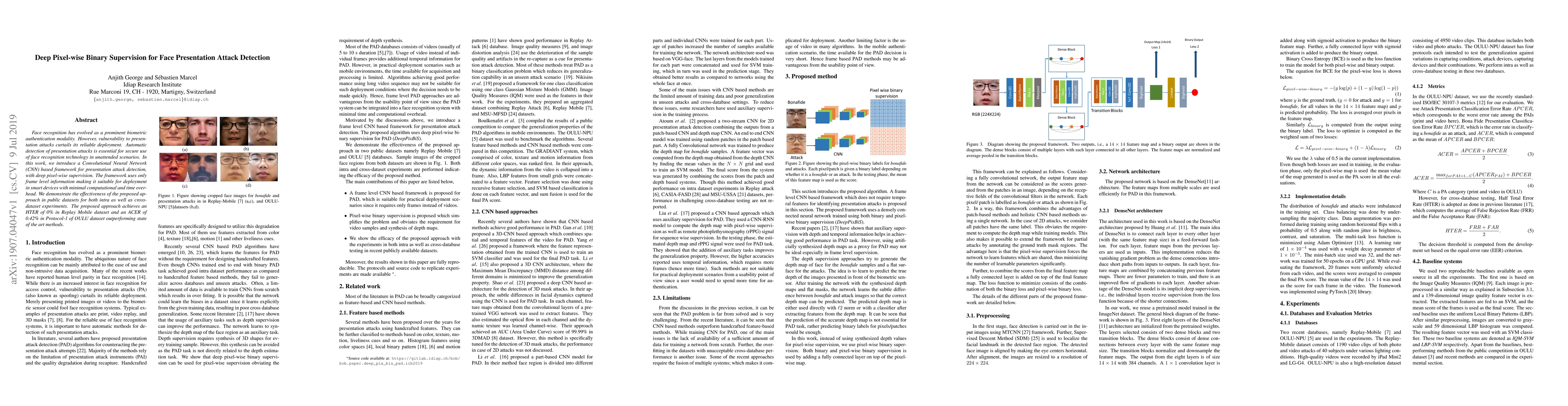 This paper presents a CNN-based framework for detecting presentation attacks in face recognition using deep pixel-wise supervision. The proposed method achieves high detection accuracy with minimal computational overhead, outperforming existing state-of-the-art methods on public datasets.