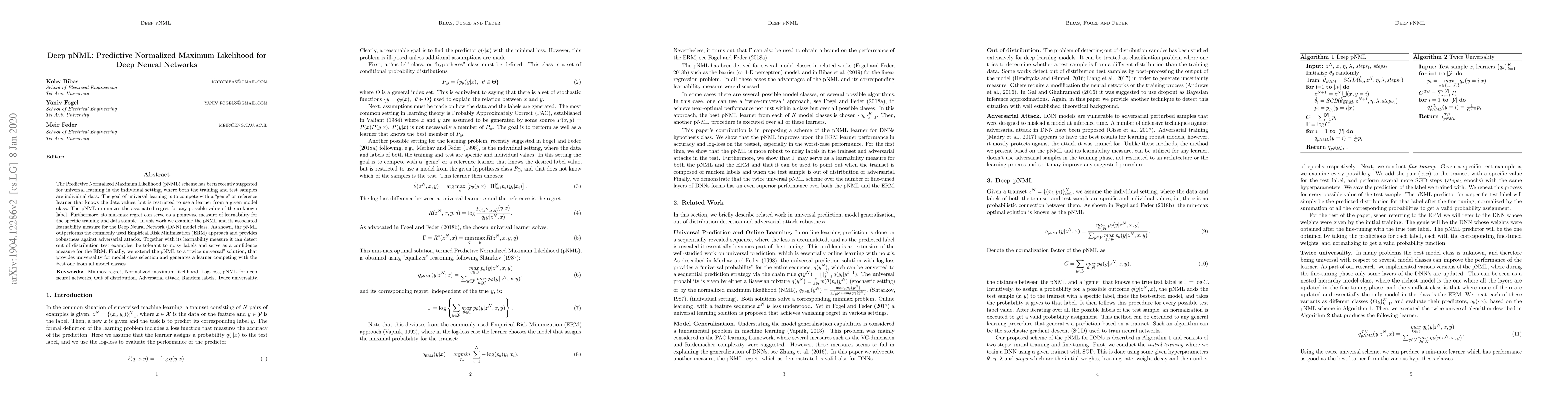 The Predictive Normalized Maximum Likelihood (pNML) scheme has been recently suggested for universal learning in the individual setting, where both the training and test samples are individual data. The goal of universal learning is to compete with a ``genie'' or reference learner that knows the data values, but is restricted to use a learner from a given model class. The pNML minimizes the associated regret for any possible value of the unknown label. Furthermore, its min-max regret can serve as a pointwise measure of learnability for the specific training and data sample. In this work we examine the pNML and its associated learnability measure for the Deep Neural Network (DNN) model class. As shown, the pNML outperforms the commonly used Empirical Risk Minimization (ERM) approach and provides robustness against adversarial attacks. Together with its learnability measure it can detect out of distribution test examples, be tolerant to noisy labels and serve as a confidence measure for the ERM. Finally, we extend the pNML to a ``twice universal'' solution, that provides universality for model class selection and generates a learner competing with the best one from all model classes.