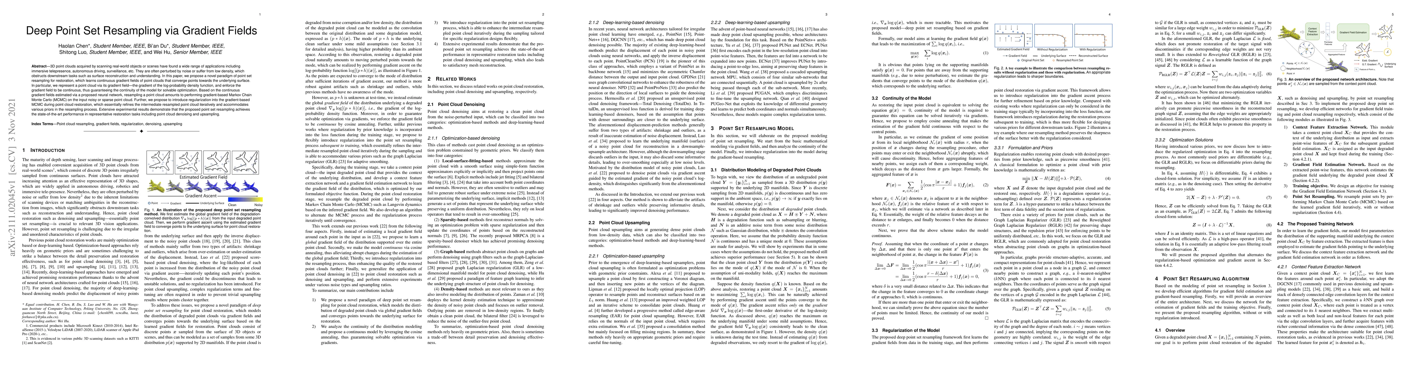 This paper introduces a novel method for resampling 3D point clouds by learning continuous gradient fields that guide points towards the underlying surface, using gradient-based Markov Chain Monte Carlo (MCMC) and regularization to refine the resampled point cloud, achieving state-of-the-art performance in denoising and upsampling tasks.