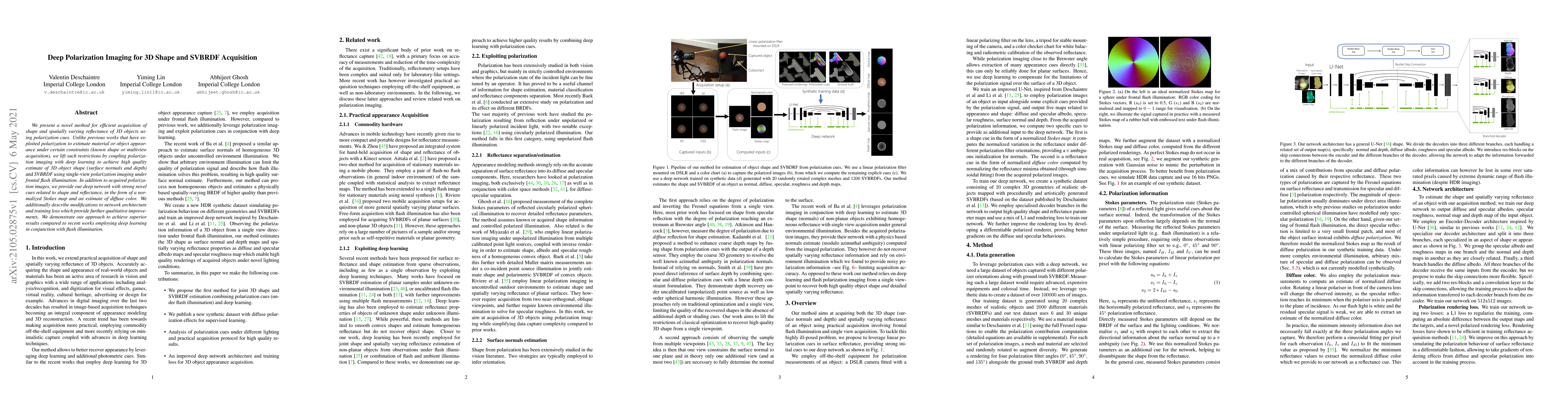 A novel method using deep learning with polarization imaging achieves high-quality 3D shape and spatially varying reflectance acquisition, surpassing previous works in single-view setups.