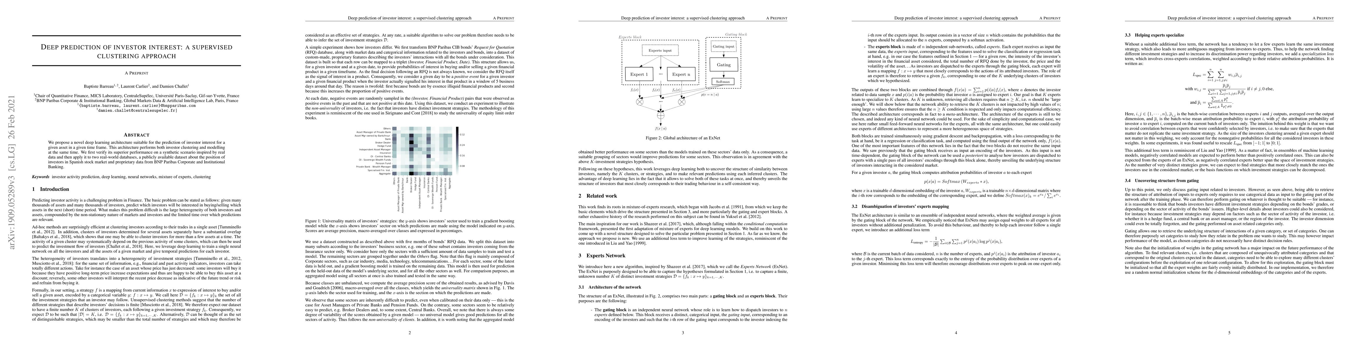 We propose a novel deep learning architecture suitable for the prediction of investor interest for a given asset in a given time frame. This architecture performs both investor clustering and modelling at the same time. We first verify its superior performance on a synthetic scenario inspired by real data and then apply it to two real-world databases, a publicly available dataset about the position of investors in Spanish stock market and proprietary data from BNP Paribas Corporate and Institutional Banking.
