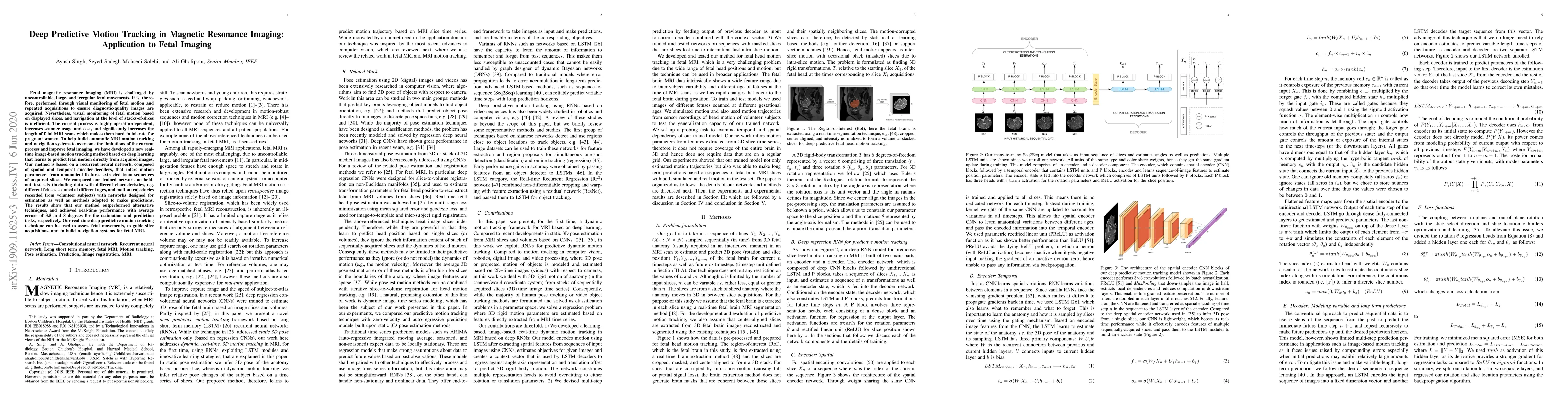 This paper presents a deep learning-based method for real-time predictive motion tracking in fetal MRI, addressing the inefficiencies of current manual tracking processes. The proposed recurrent neural network model outperforms alternative techniques, achieving real-time performance with low error rates, and holds promise for improving the efficiency and tolerance of fetal MRI scans.