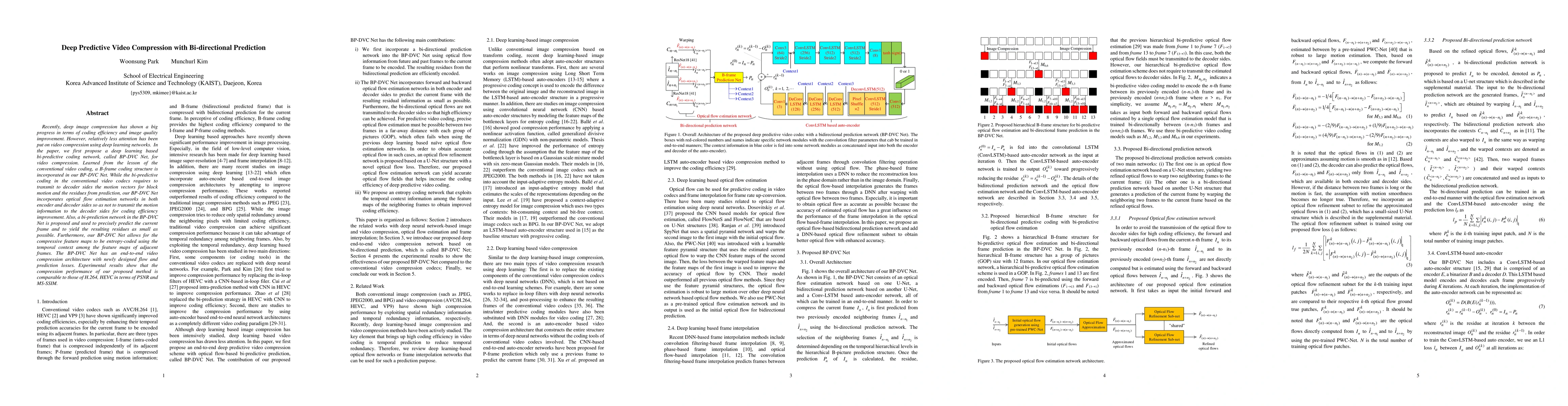 This paper proposes BP-DVC Net, a deep learning-based bi-predictive coding network for video compression, incorporating B-frame structure and optical flow estimation to enhance coding efficiency without transmitting motion vectors. The method achieves competitive compression performance compared to H.264 and HEVC in terms of PSNR and MS-SSIM.