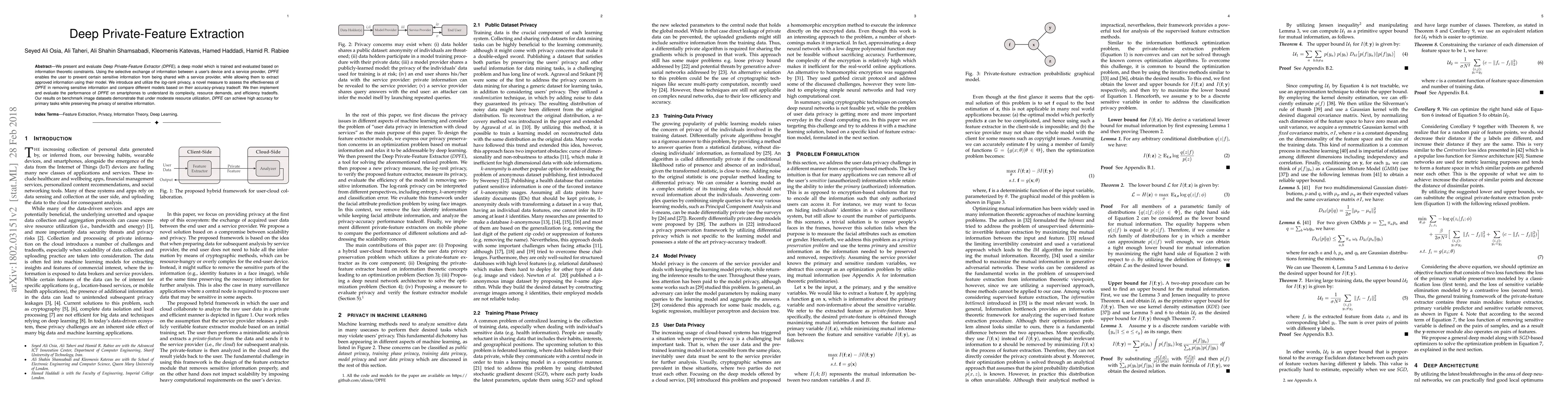 A new model called Deep Private-Feature Extractor (DPFE) is proposed to extract approved information while keeping sensitive data private. DPFE achieves high accuracy for primary tasks with moderate resource utilization while preserving user privacy.