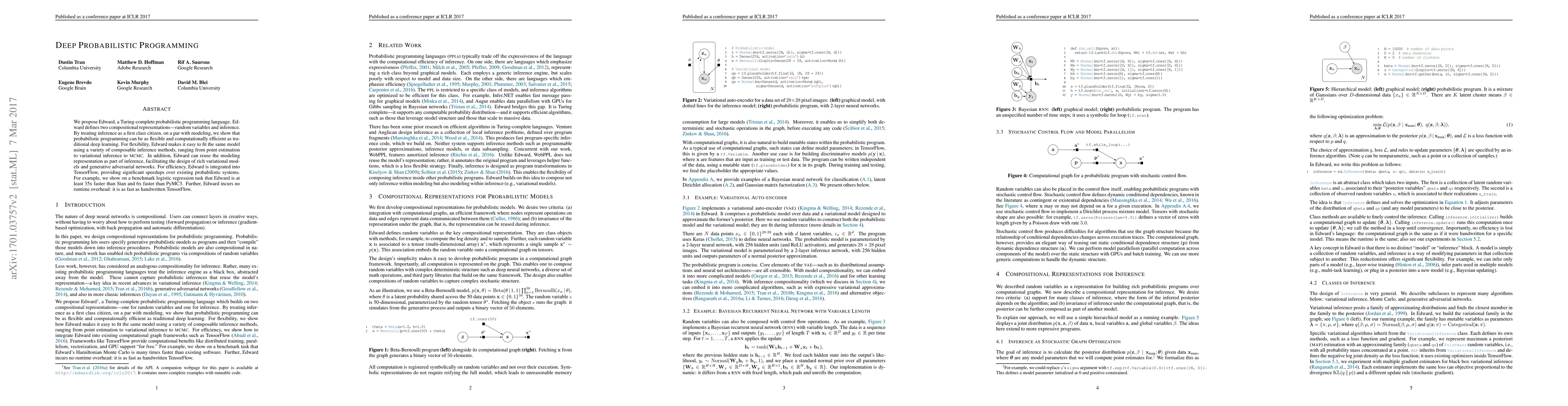 Edward is a Turing-complete probabilistic programming language that integrates seamlessly with TensorFlow, offering flexible and efficient inference methods for probabilistic models, outperforming existing systems like Stan and PyMC3 in speed.
