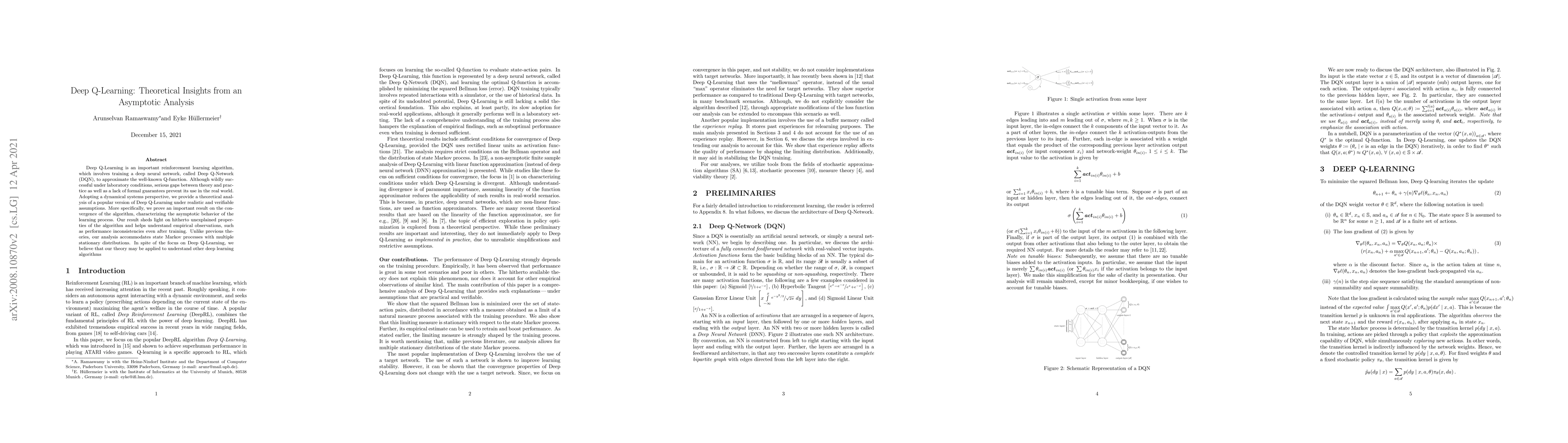 This paper provides a theoretical analysis of Deep Q-Learning, proving its convergence under realistic assumptions and explaining its asymptotic behavior. The study addresses gaps between theory and practice, offering insights into performance inconsistencies and extending to state Markov processes with multiple stationary distributions.