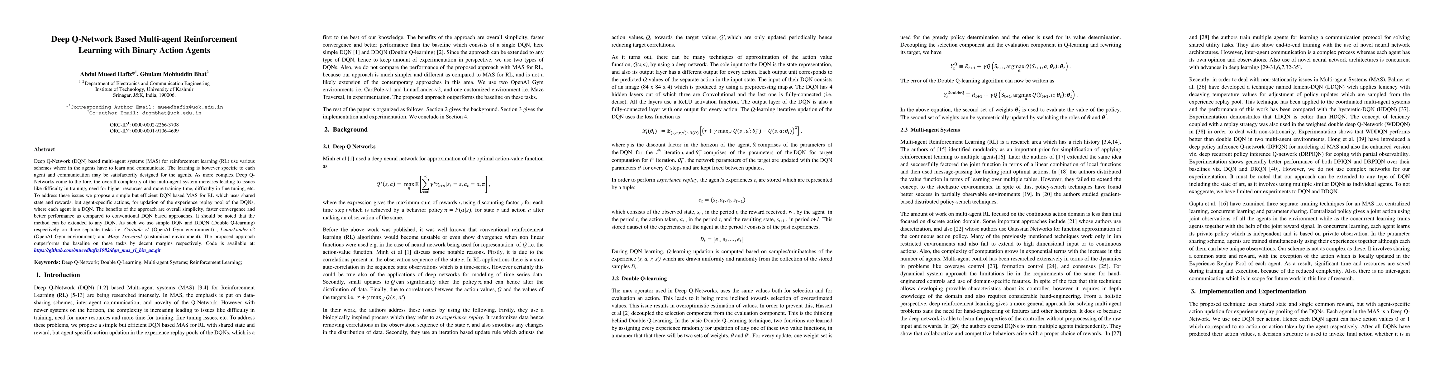 Deep Q-Network (DQN) based multi-agent systems (MAS) for reinforcement learning (RL) use various schemes where in the agents have to learn and communicate. The learning is however specific to each agent and communication may be satisfactorily designed for the agents. As more complex Deep QNetworks come to the fore, the overall complexity of the multi-agent system increases leading to issues like difficulty in training, need for higher resources and more training time, difficulty in fine-tuning, etc. To address these issues we propose a simple but efficient DQN based MAS for RL which uses shared state and rewards, but agent-specific actions, for updation of the experience replay pool of the DQNs, where each agent is a DQN. The benefits of the approach are overall simplicity, faster convergence and better performance as compared to conventional DQN based approaches. It should be noted that the method can be extended to any DQN. As such we use simple DQN and DDQN (Double Q-learning) respectively on three separate tasks i.e. Cartpole-v1 (OpenAI Gym environment) , LunarLander-v2 (OpenAI Gym environment) and Maze Traversal (customized environment). The proposed approach outperforms the baseline on these tasks by decent margins respectively.