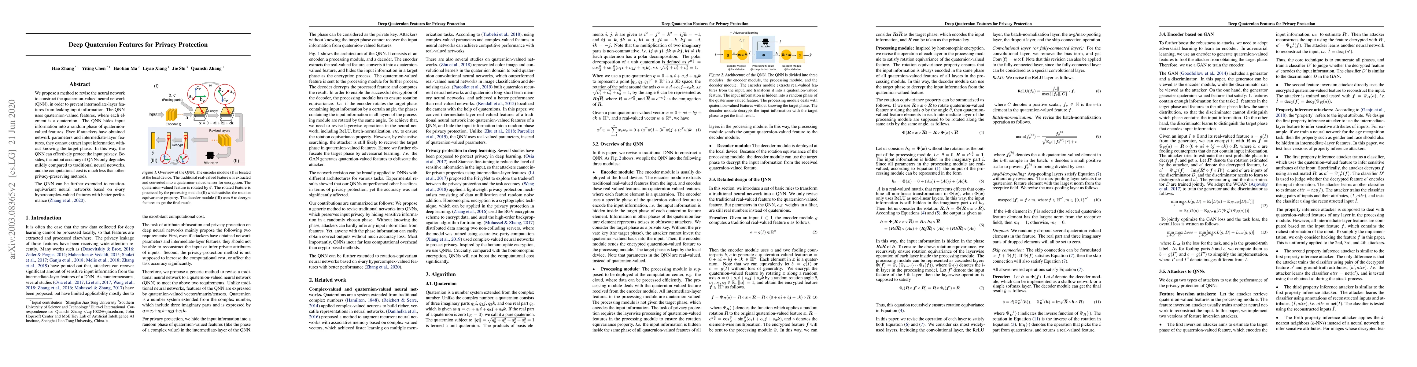 A new neural network design called Quaternion Features protects input information by encoding it into a random phase of quaternion-valued features, making it difficult to extract without knowing the target phase.