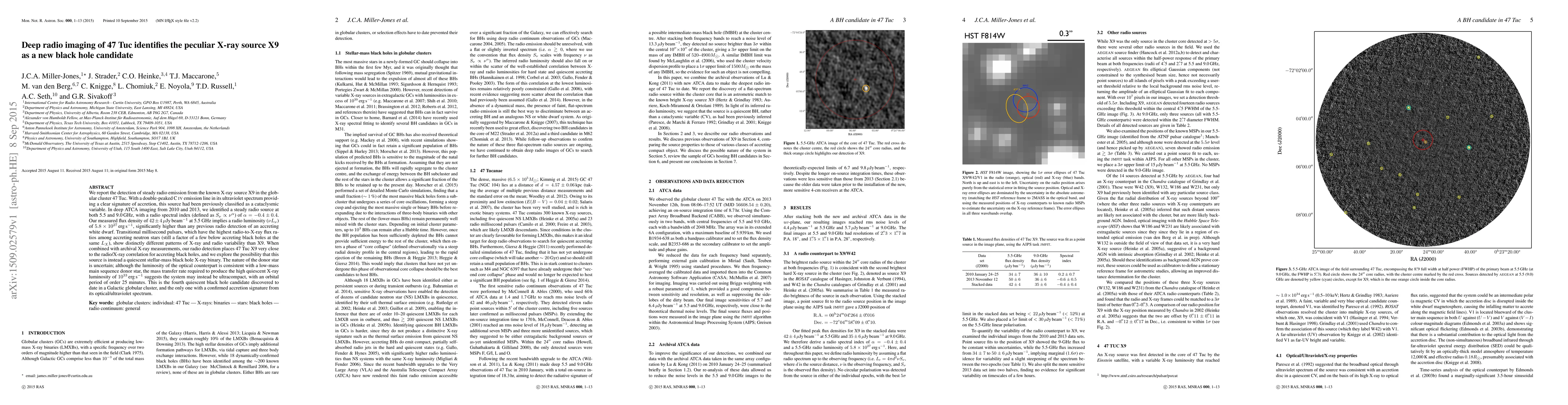 We report the detection of steady radio emission from the known X-ray source X9 in the globular cluster 47 Tuc. With a double-peaked C IV emission line in its ultraviolet spectrum providing a clear signature of accretion, this source had been previously classified as a cataclysmic variable. In deep ATCA imaging from 2010 and 2013, we identified a steady radio source at both 5.5 and 9.0 GHz, with a radio spectral index (defined as $S_{\nu}\propto\nu^{\alpha}$) of $\alpha=-0.4\pm0.4$. Our measured flux density of $42\pm4$ microJy/beam at 5.5 GHz implies a radio luminosity ($\nu L_{\nu}$) of 5.8e27 erg/s, significantly higher than any previous radio detection of an accreting white dwarf. Transitional millisecond pulsars, which have the highest radio-to-X-ray flux ratios among accreting neutron stars (still a factor of a few below accreting black holes at the same X-ray luminosity), show distinctly different patterns of X-ray and radio variability than X9. When combined with archival X-ray measurements, our radio detection places 47 Tuc X9 very close to the radio/X-ray correlation for accreting black holes, and we explore the possibility that this source is instead a quiescent stellar-mass black hole X-ray binary. The nature of the donor star is uncertain; although the luminosity of the optical counterpart is consistent with a low-mass main sequence donor star, the mass transfer rate required to produce the high quiescent X-ray luminosity of 1e33 erg/s suggests the system may instead be ultracompact, with an orbital period of order 25 minutes. This is the fourth quiescent black hole candidate discovered to date in a Galactic globular cluster, and the only one with a confirmed accretion signature from its optical/ultraviolet spectrum.