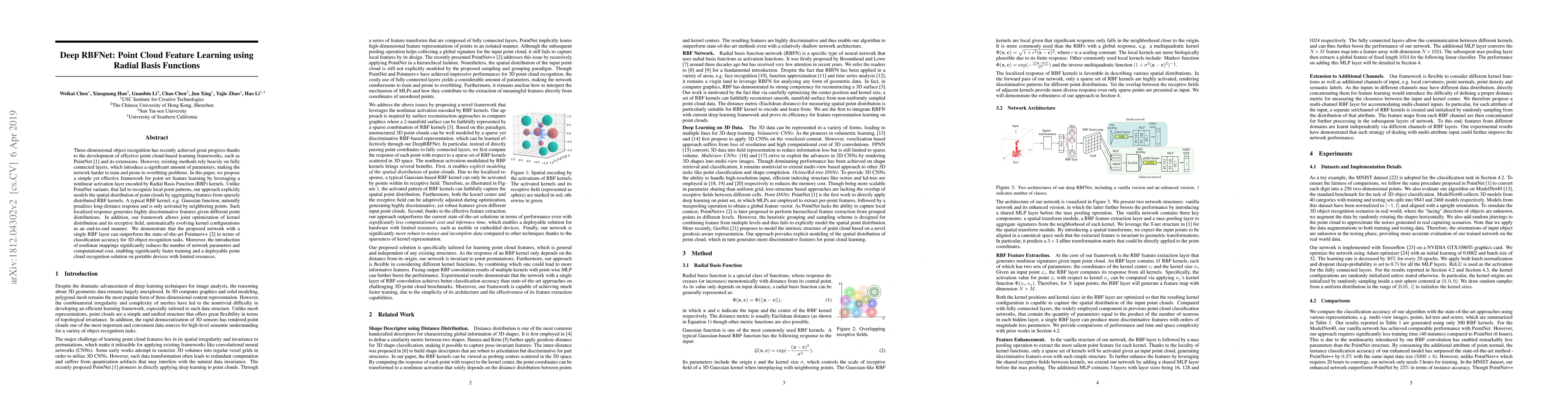 This paper proposes a new point cloud feature learning framework that uses Radial Basis Functions to learn local patterns in 3D object recognition, outperforming state-of-the-art methods with fewer parameters and computational cost.