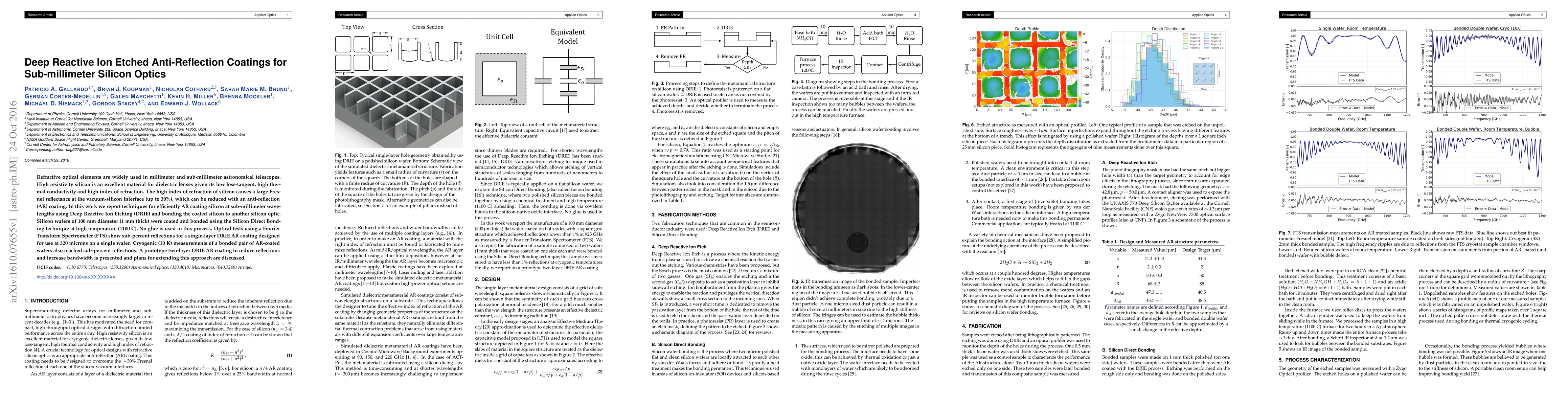 This paper explores the use of Deep Reactive Ion Etching (DRIE) to create anti-reflection coatings on high-resistivity silicon for sub-millimeter optics, achieving sub-percent reflections. The study also presents a prototype two-layer DRIE AR coating and discusses future extensions.