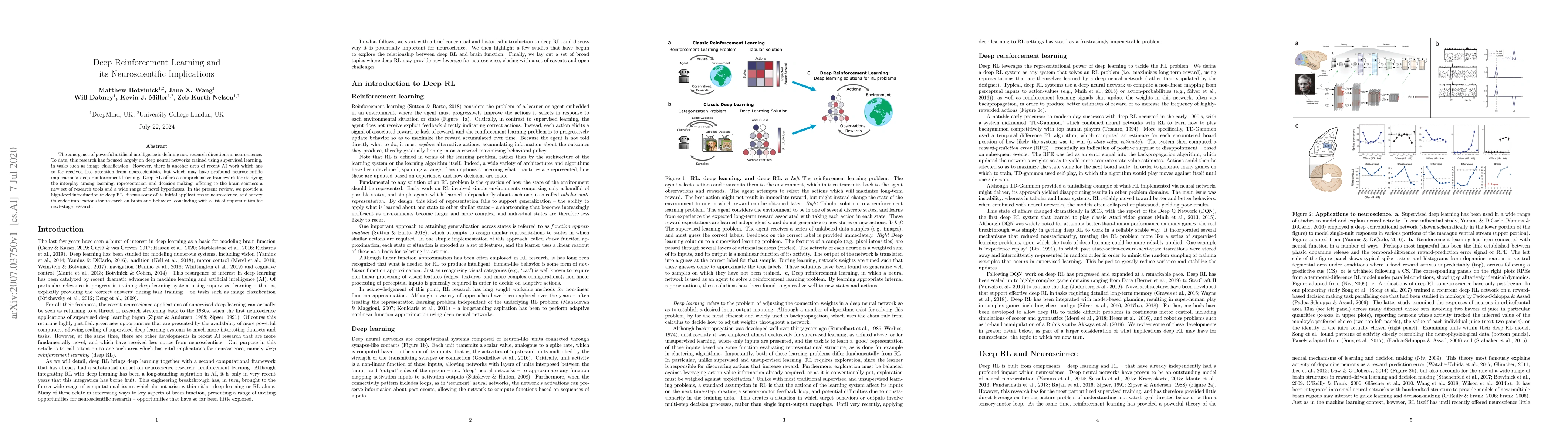 Deep Reinforcement Learning (RL), a less-explored AI area, is found to have significant neuroscientific implications. It offers a framework for studying learning, representation, and decision-making, presenting new research tools and hypotheses for neuroscience, with potential to reshape brain and behavior research.