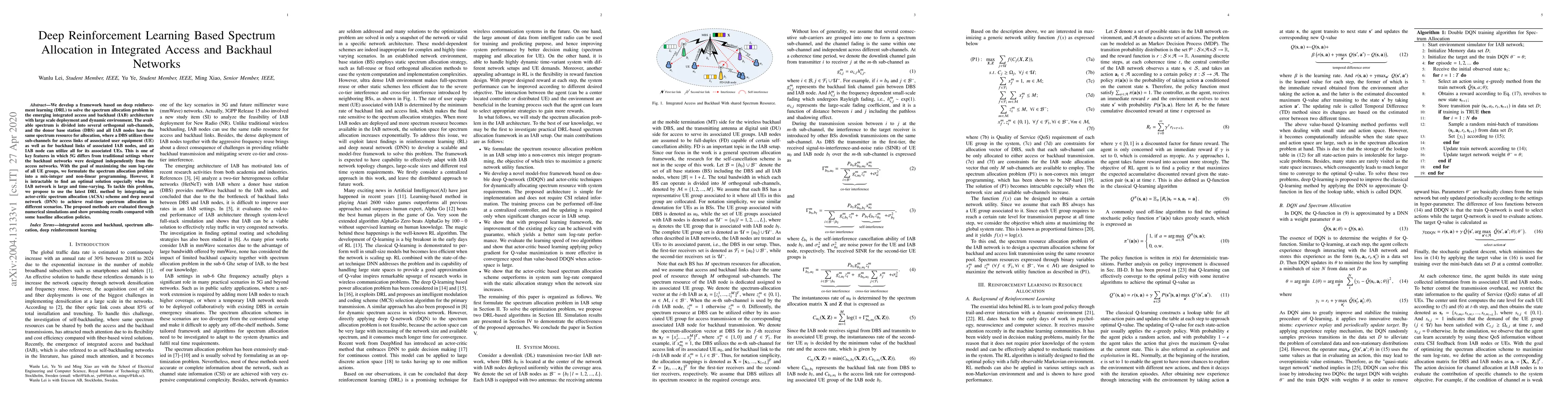 This paper proposes a deep reinforcement learning framework to address the spectrum allocation problem in integrated access and backhaul networks, aiming to maximize the sum log-rate of user equipment groups. The developed actor-critic spectrum allocation scheme with deep neural networks achieves real-time allocation in dynamic environments, outperforming baseline policies in simulations.