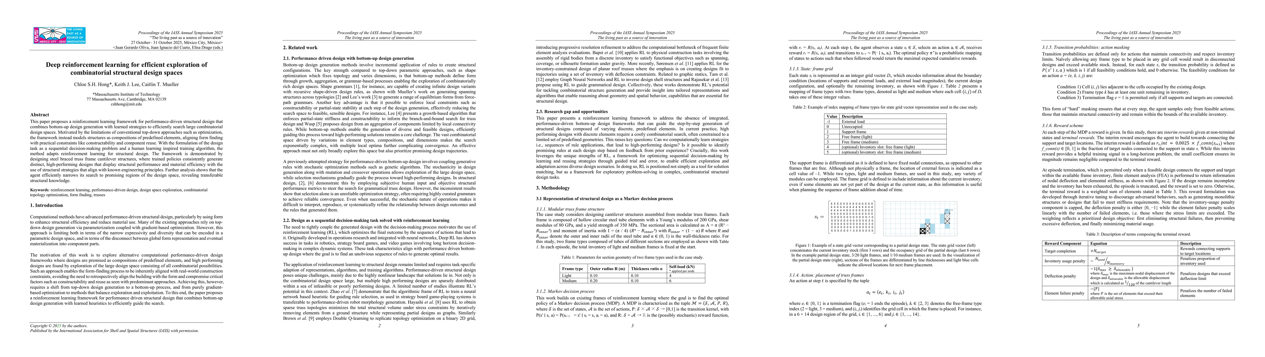 The research proposes a reinforcement learning framework for structural design, formulating it as a sequential decision-making problem with a human learning-inspired training algorithm. It uses a two-phase training process, dividing complex reasoning tasks to efficiently search large combinatorial design spaces for high-performing designs.
