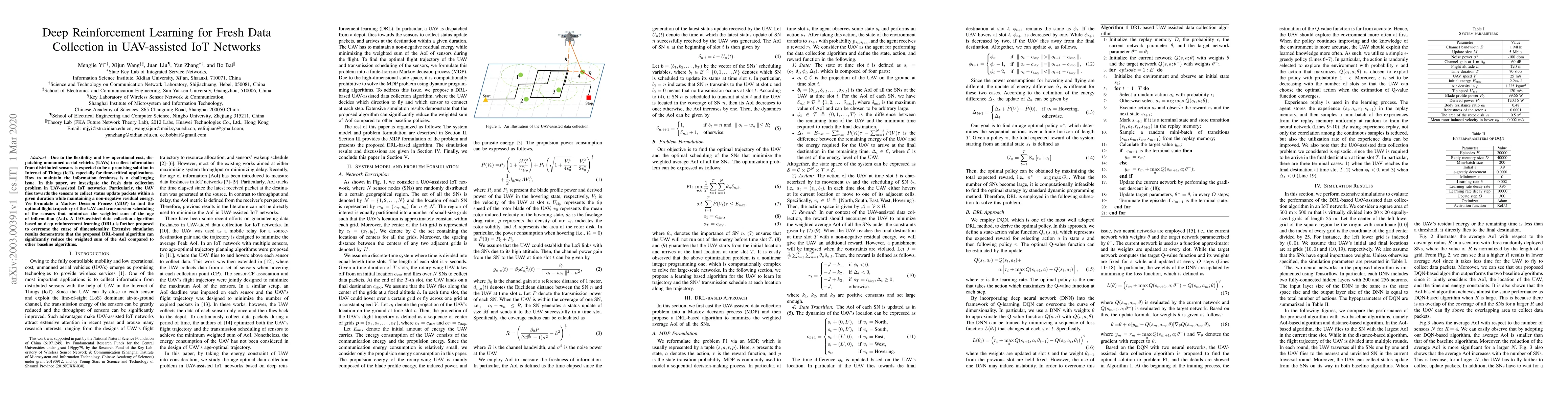 This paper proposes a deep reinforcement learning (DRL) approach to optimize UAV flight trajectories and sensor transmission schedules in IoT networks to maintain data freshness. The study formulates the problem as a Markov Decision Process (MDP) and demonstrates that the DRL algorithm effectively minimizes the age of information (AoI) compared to baseline methods.