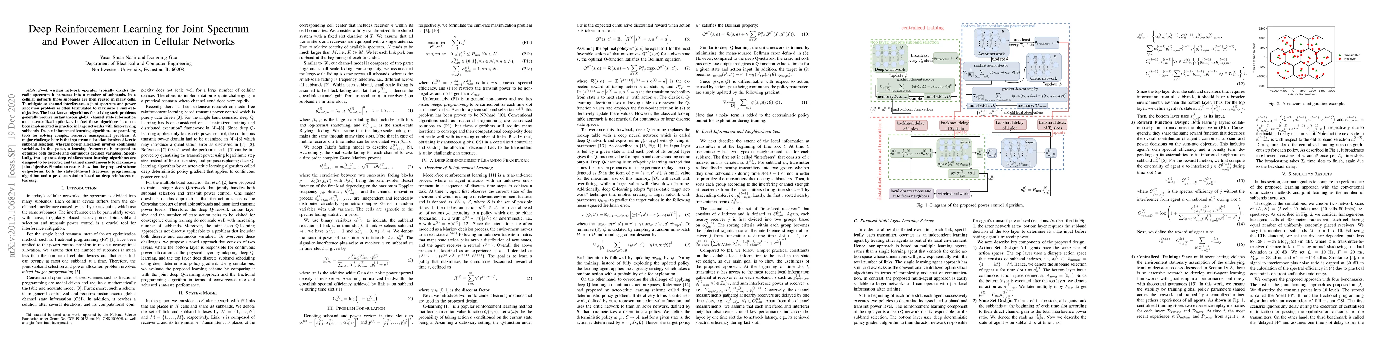 This paper proposes a deep reinforcement learning framework to optimize joint spectrum and power allocation in cellular networks, addressing the challenge of discrete subband selection and continuous power allocation. Simulation results demonstrate superior performance over existing algorithms.