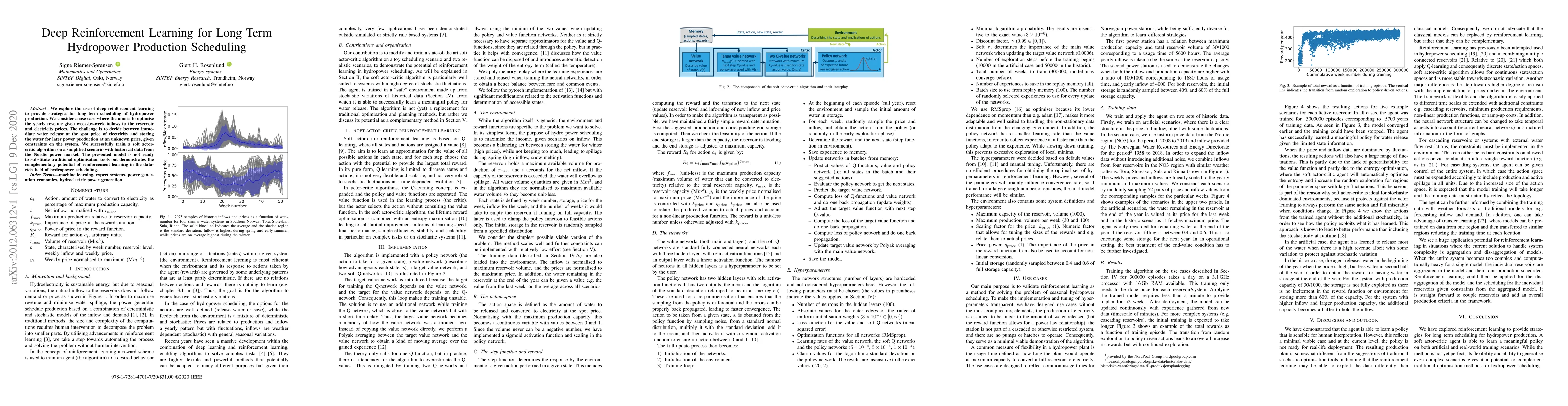 This paper investigates deep reinforcement learning for optimizing long-term hydropower production scheduling, focusing on maximizing yearly revenue based on weekly reservoir inflows and electricity prices. The study employs a soft actor-critic algorithm trained on historical Nordic power market data, showing the potential of reinforcement learning to complement traditional optimization methods in hydropower scheduling.