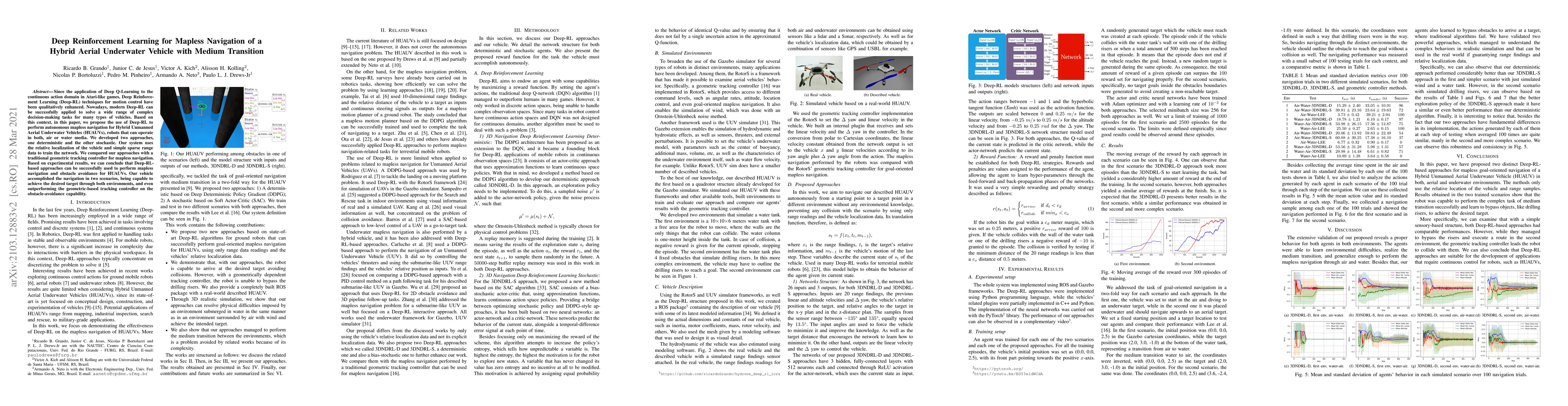 This paper proposes Deep Reinforcement Learning (Deep-RL) techniques for autonomous mapless navigation of Hybrid Unmanned Aerial Underwater Vehicles (HUAUVs). The study compares Deep-RL-based methods with traditional geometric tracking, demonstrating superior performance in obstacle avoidance and navigation across air and water environments.
