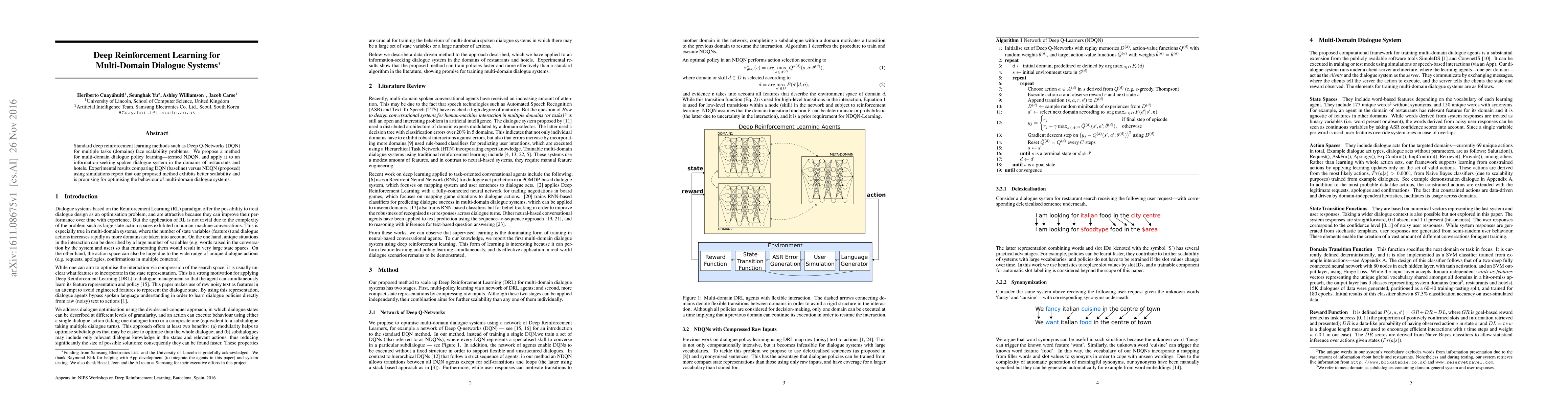 This paper proposes NDQN, a scalable deep reinforcement learning method for multi-domain dialogue systems, demonstrating improved performance over standard DQN in the domains of restaurants and hotels. Experimental results show NDQN's superior scalability and effectiveness in optimizing dialogue system behavior.