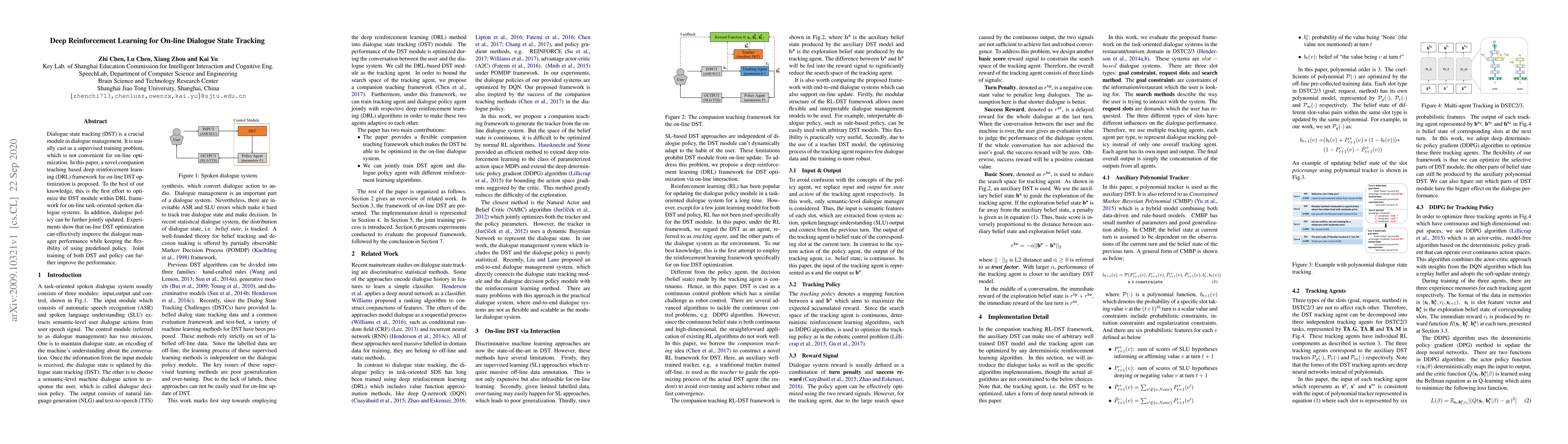 This paper proposes a novel deep reinforcement learning framework for on-line optimization of dialogue state tracking (DST) in task-oriented spoken dialogue systems, demonstrating improved performance and flexibility. Joint training of DST and dialogue policy further enhances system performance.