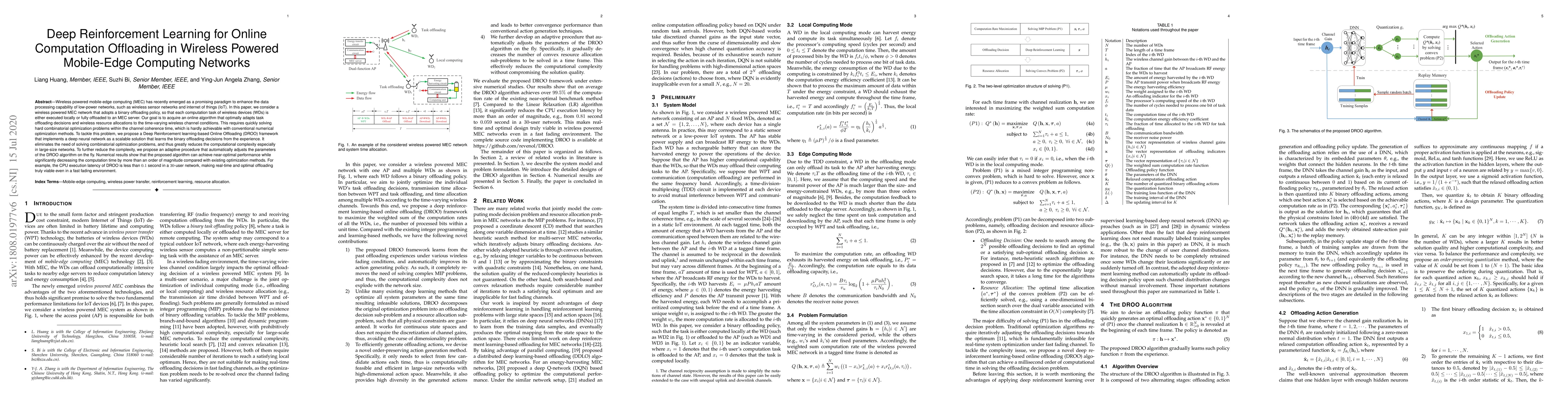 This paper proposes a Deep Reinforcement Learning-based Online Offloading (DROO) framework to optimize task offloading decisions in wireless powered mobile-edge computing networks. The DROO framework significantly reduces computational complexity and achieves near-optimal performance with real-time adaptability, demonstrating a CPU execution latency of less than 0.1 second in a 30-user network.