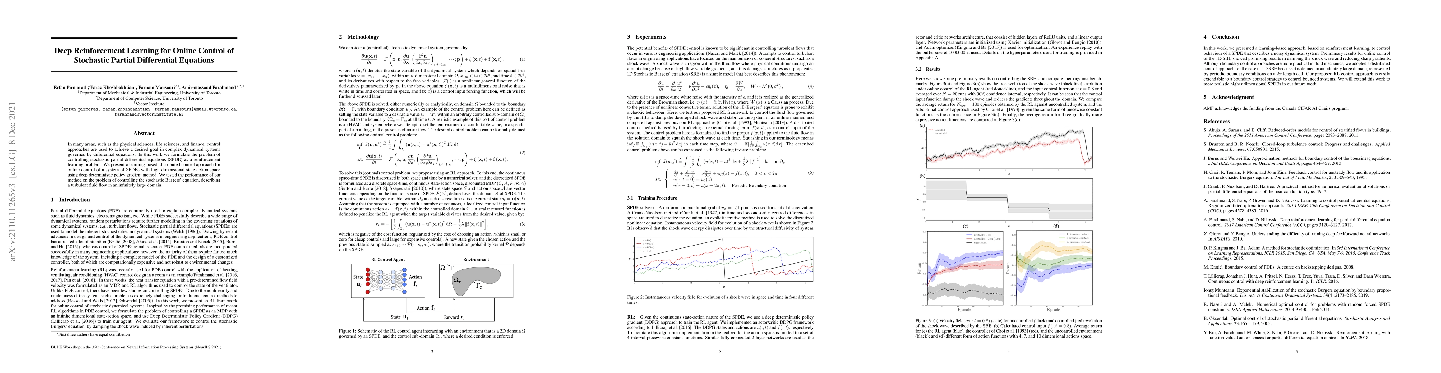 The paper introduces a deep reinforcement learning framework for online control of stochastic partial differential equations, specifically demonstrated on the stochastic Burgers' equation.