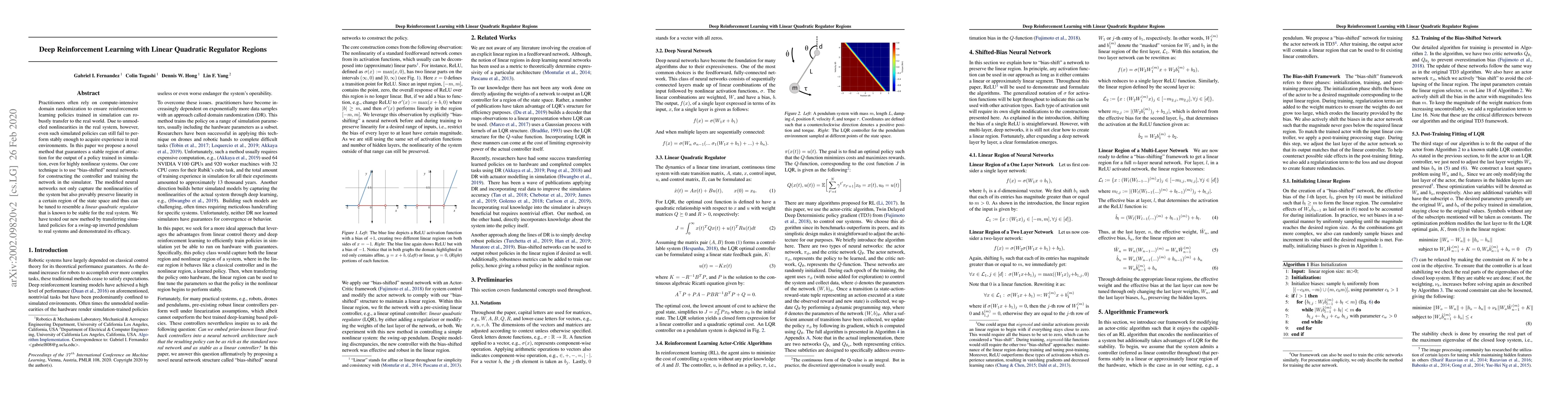 This paper proposes a novel method using "bias-shifted" neural networks to guarantee stable policy transfer from simulation to real nonlinear systems. The technique leverages linear quadratic regulator regions to ensure stability, demonstrated through successful swing-up of an inverted pendulum in real environments.