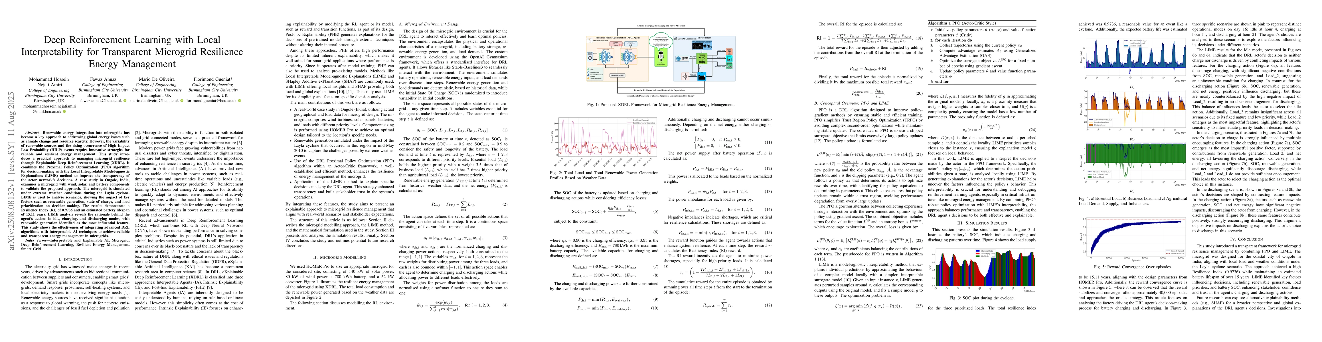 This work stands out by focusing on combining DRL with LIME for transparent microgrid resilience management, which is a novel approach addressing the need for both performance and explainability in smart grid applications.