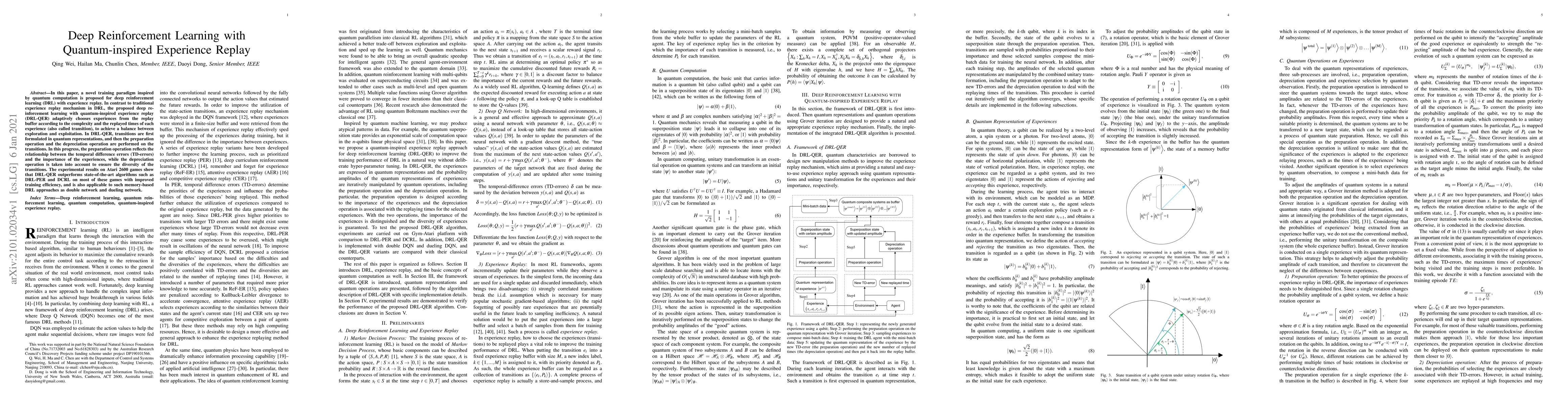 This paper introduces a novel deep reinforcement learning method called DRL-QER, which uses quantum-inspired experience replay to adaptively select experiences based on complexity and replay frequency. Experimental results show DRL-QER outperforms existing algorithms on Atari games, demonstrating improved training efficiency and applicability to various memory-based DRL approaches.
