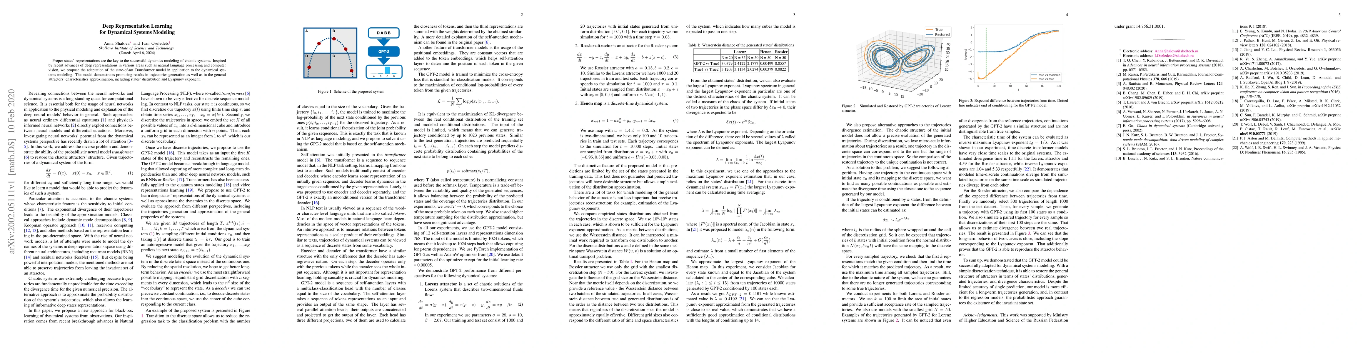 Proper states' representations are the key to the successful dynamics modeling of chaotic systems. Inspired by recent advances of deep representations in various areas such as natural language processing and computer vision, we propose the adaptation of the state-of-art Transformer model in application to the dynamical systems modeling. The model demonstrates promising results in trajectories generation as well as in the general attractors' characteristics approximation, including states' distribution and Lyapunov exponent.