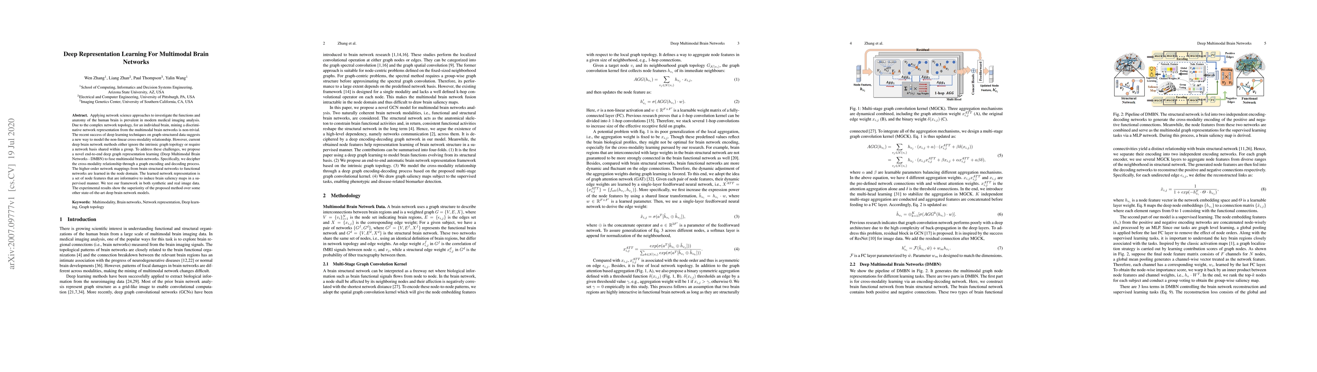 This paper proposes a novel deep graph representation learning method, DMBN, to fuse multimodal brain networks by encoding and decoding cross-modality relationships. The method outperforms other models by learning higher-order network mappings and generating informative node features for inducing brain saliency maps.